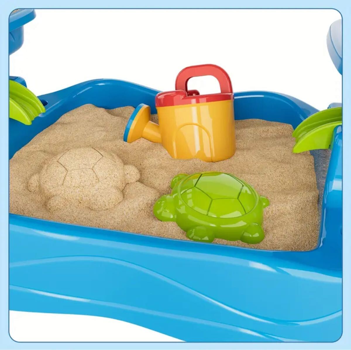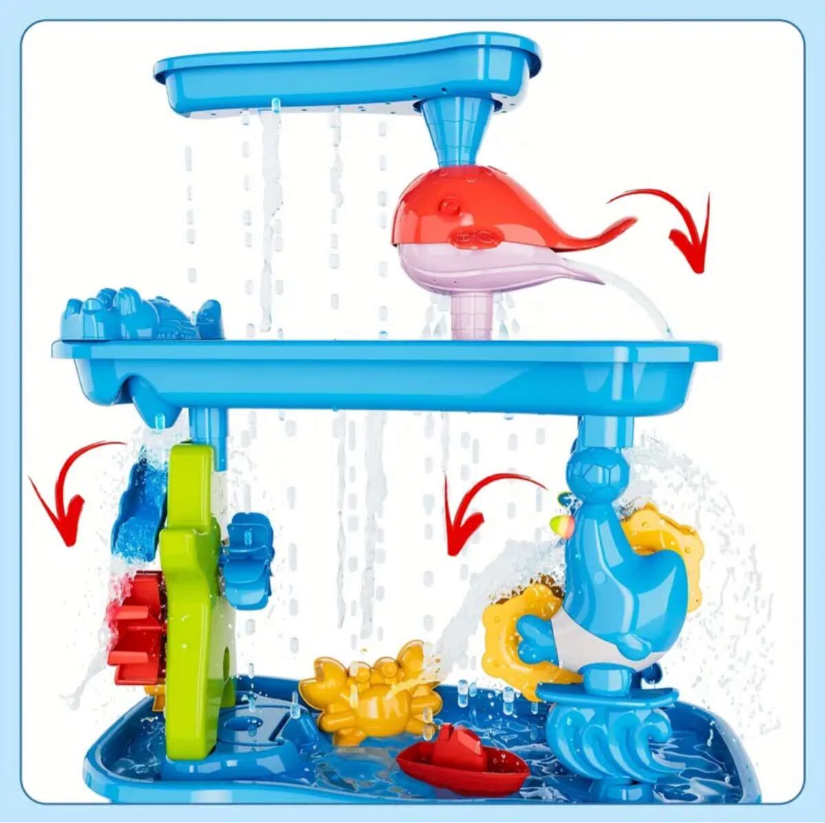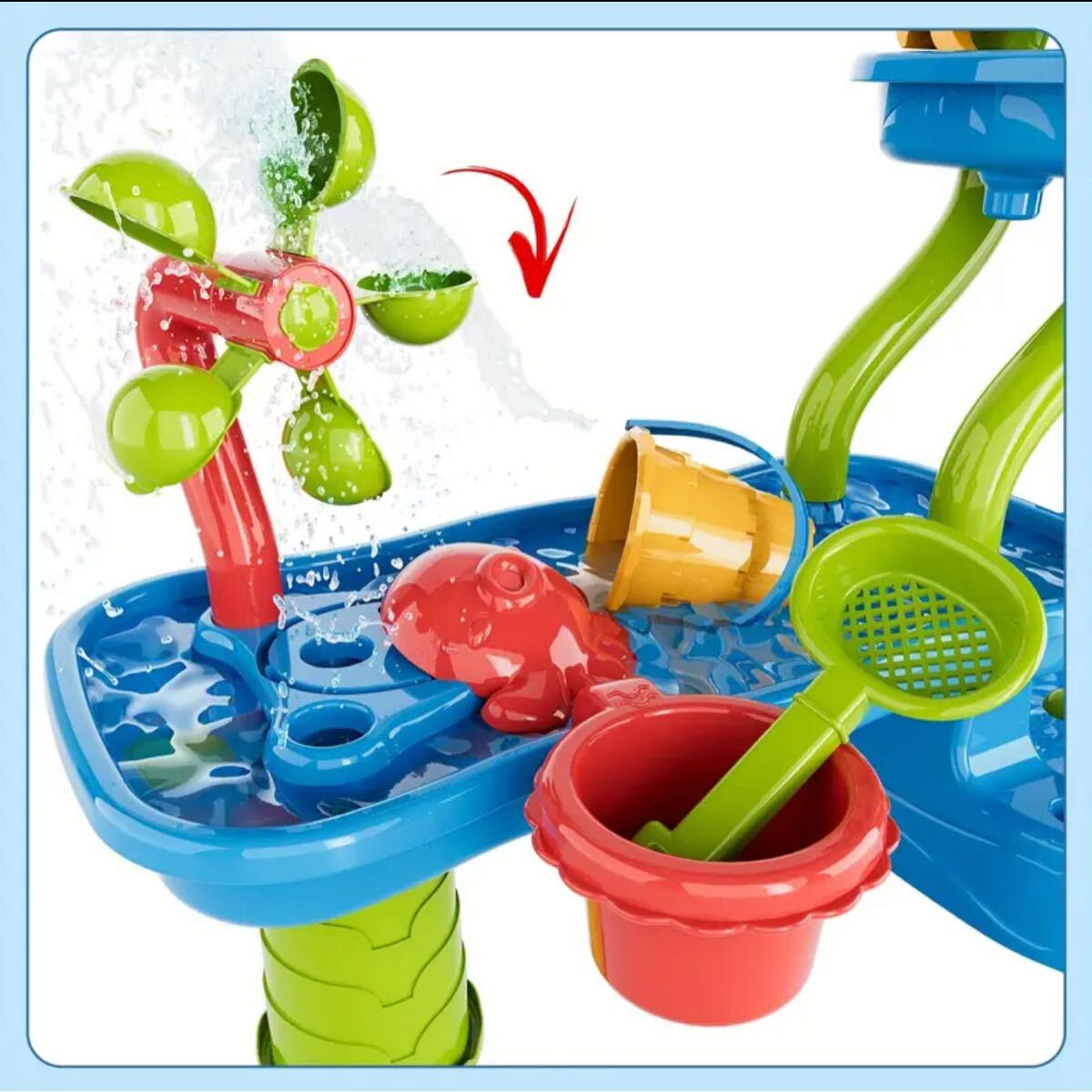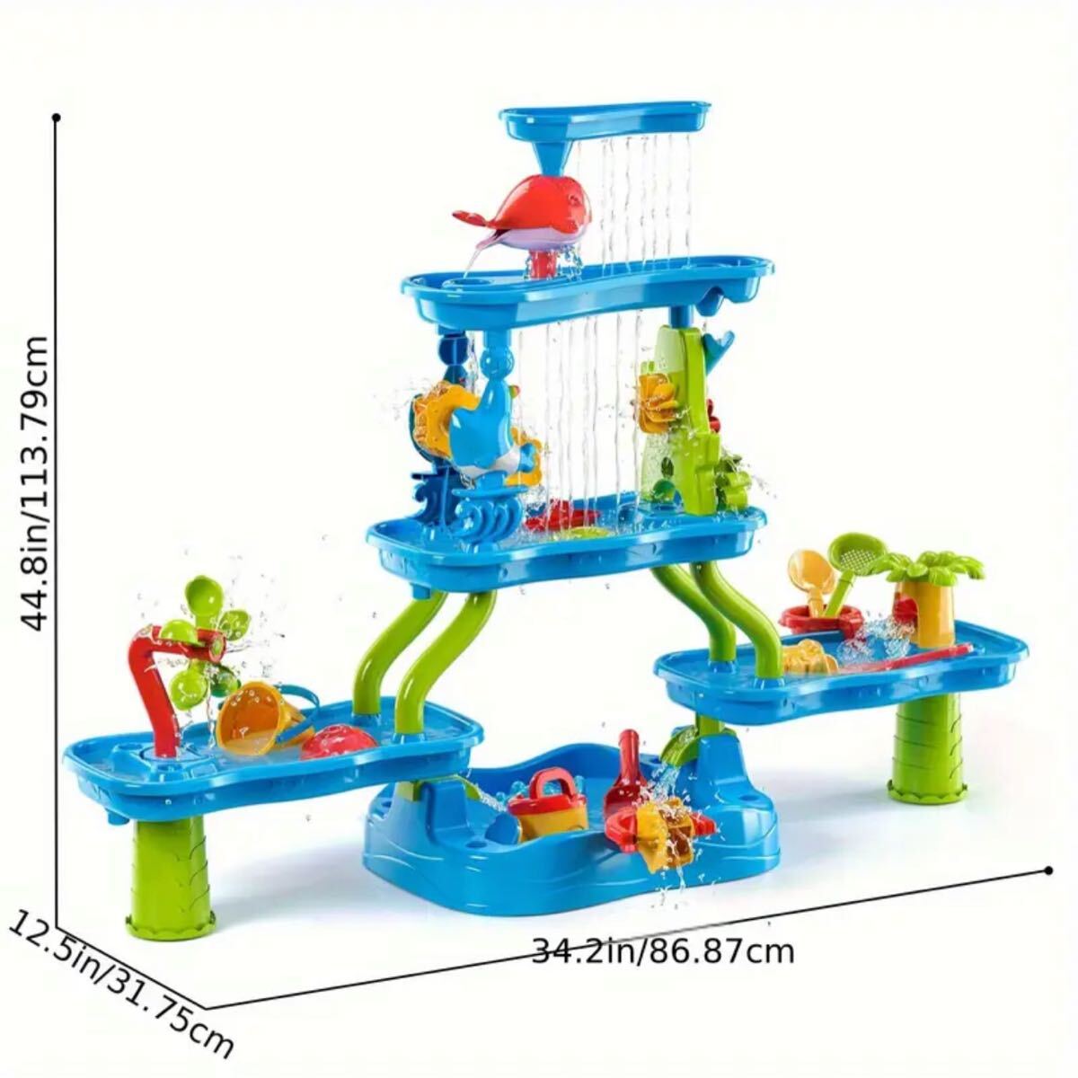 こちらは4段の砂と水遊びテーブルです。ウォーターテーブルとしても遊べるので、一年中お楽しみいただけます。知育玩具としても最適で、お子様の感性を育むのに役立ちます。プールや砂場遊びなど、屋外での遊びにぴったりです。