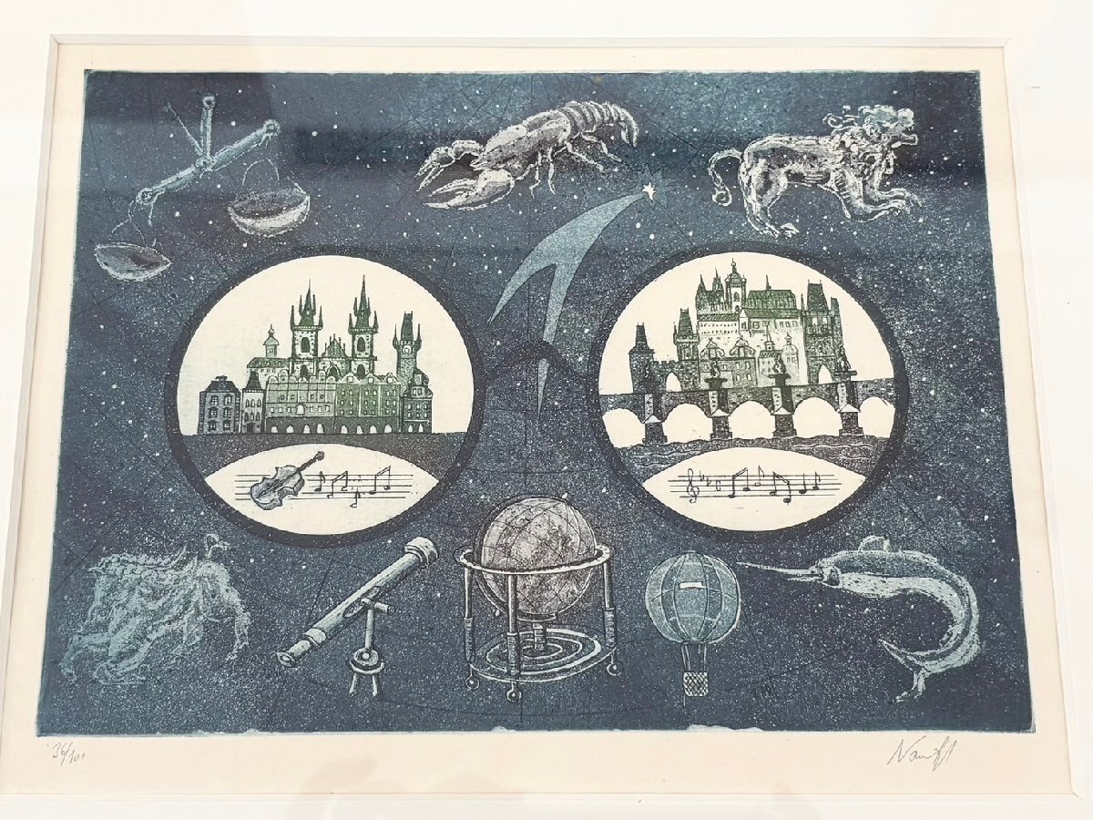 こちらは ○ ■ 美品 チェコ プラハ リトグラフ 版画 36/100 署名入 額素済 ★ となります。
