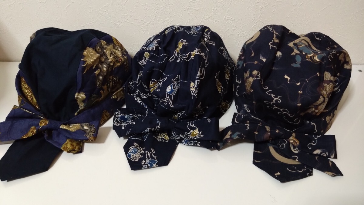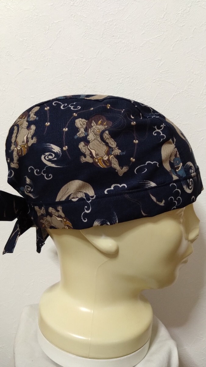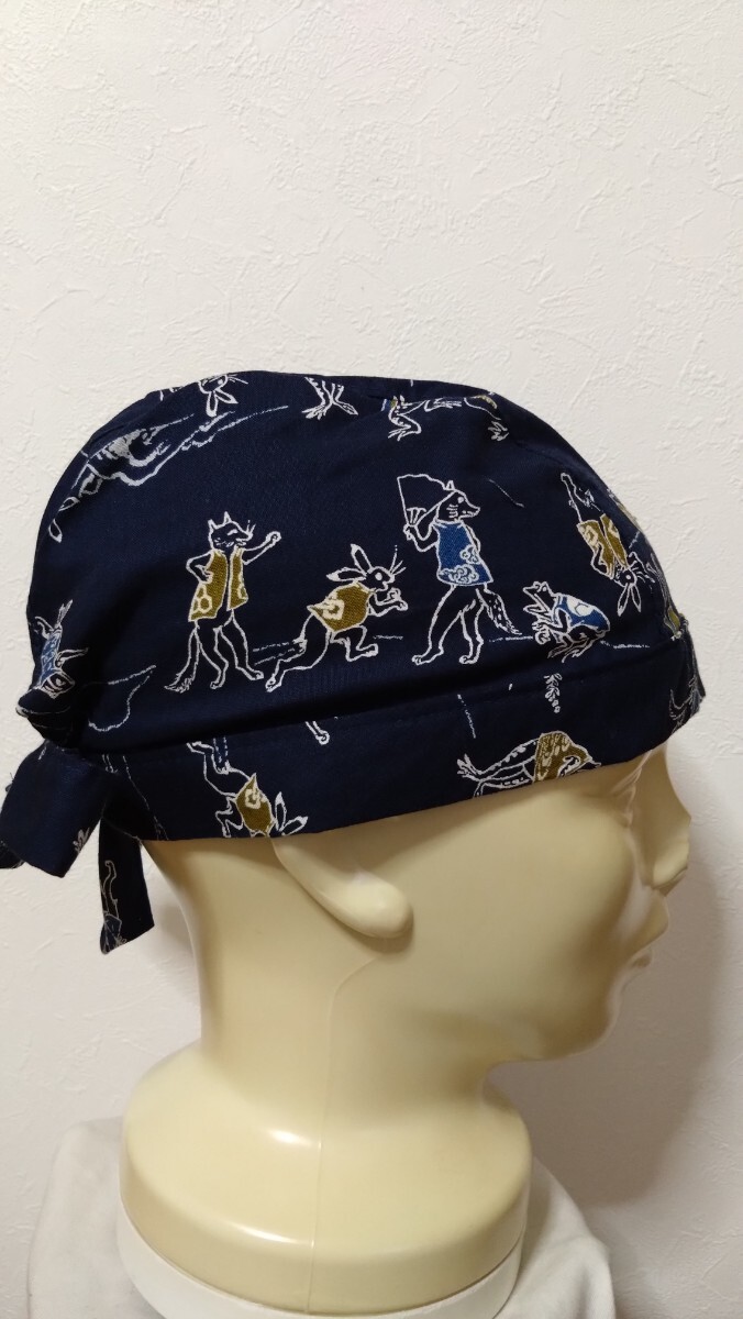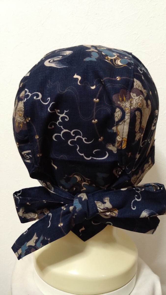 短★バンダナキャップ★ハンドメイド まとめ売り 和柄 風神雷神 鳥獣戯画 狛犬 紺