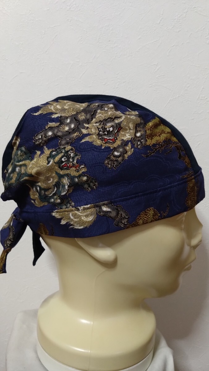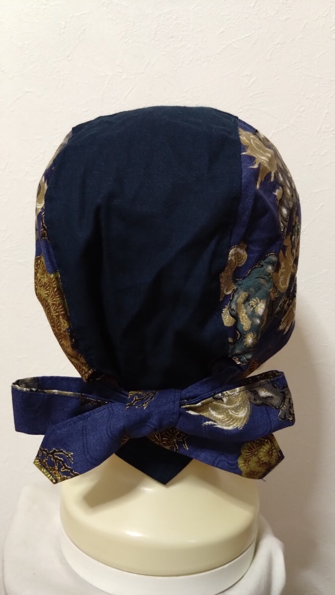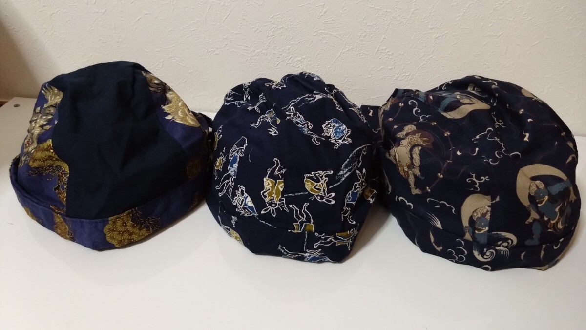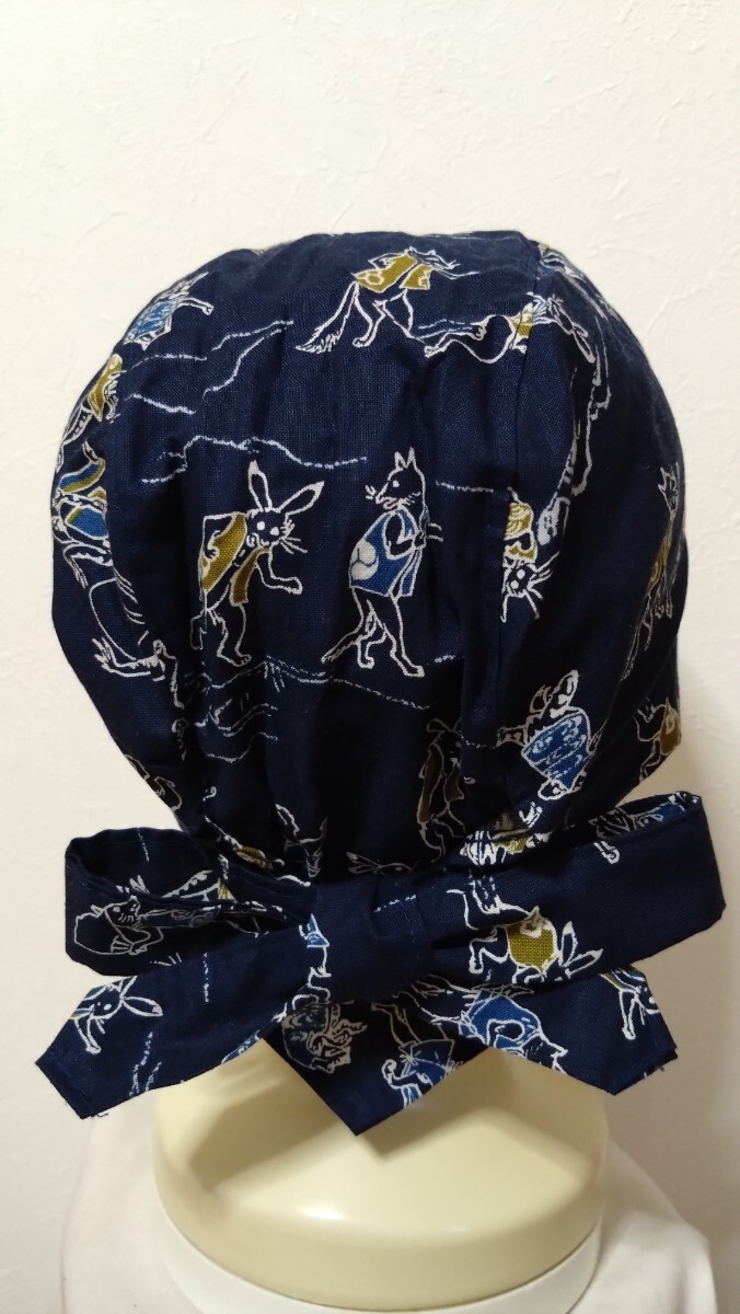 短★バンダナキャップ★ハンドメイド まとめ売り 和柄 風神雷神 鳥獣戯画 狛犬 紺