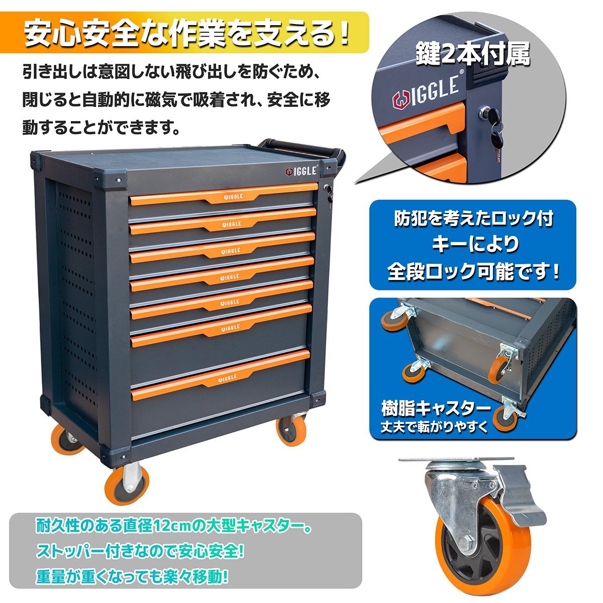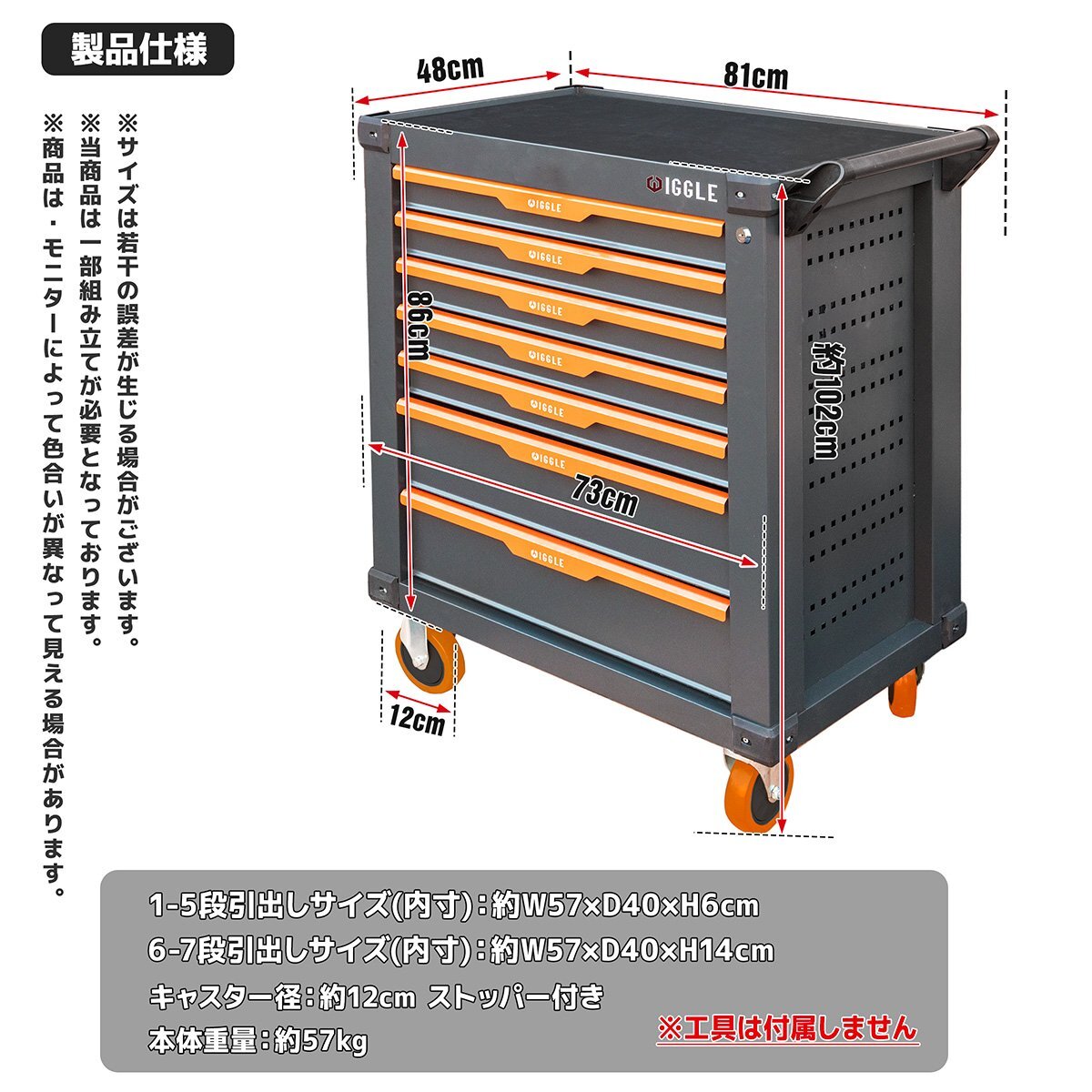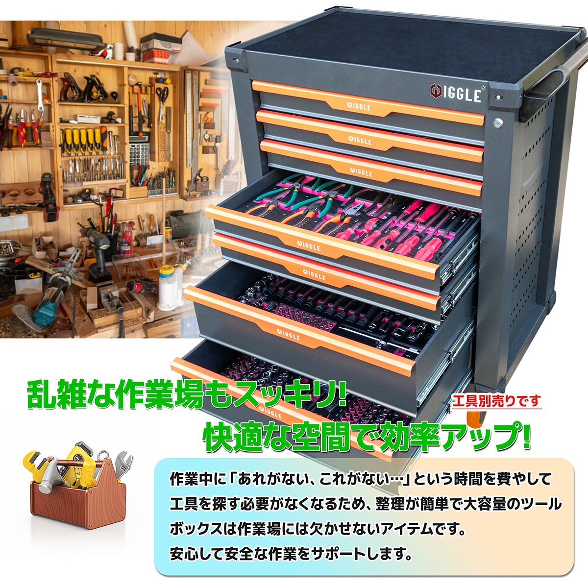 【営業所留め】7段キャビネットツールボックス 頑丈設計 工具箱 ガレージ用 たっぷり収納 ロック鍵付き ストッパーキャスター付き