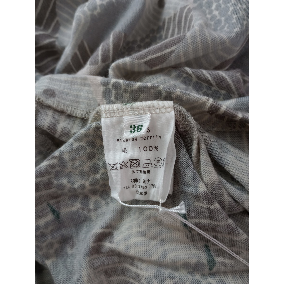 mina perhonen ミナペルホネン singing merrily ウール トップス グレー 36