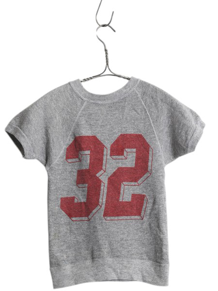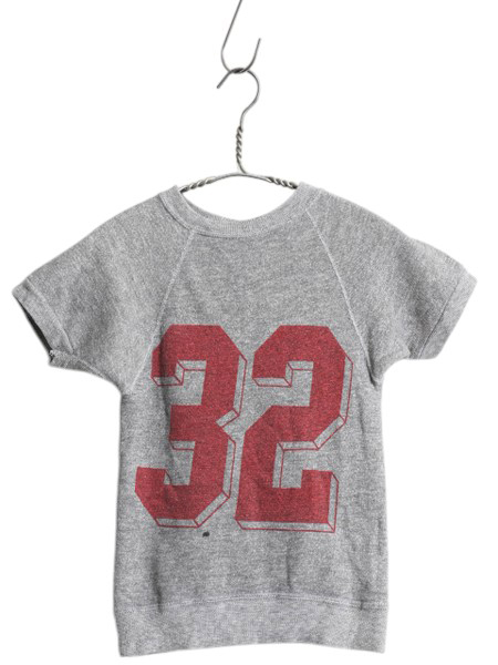 商品名 | 70s 両面 染込み プリント 半袖 スウェット キッズ 100cm 程 ヴィンテージ トレーナー ナンバリング 裏起毛 ラグラン シンプル 子ども 杢灰 |