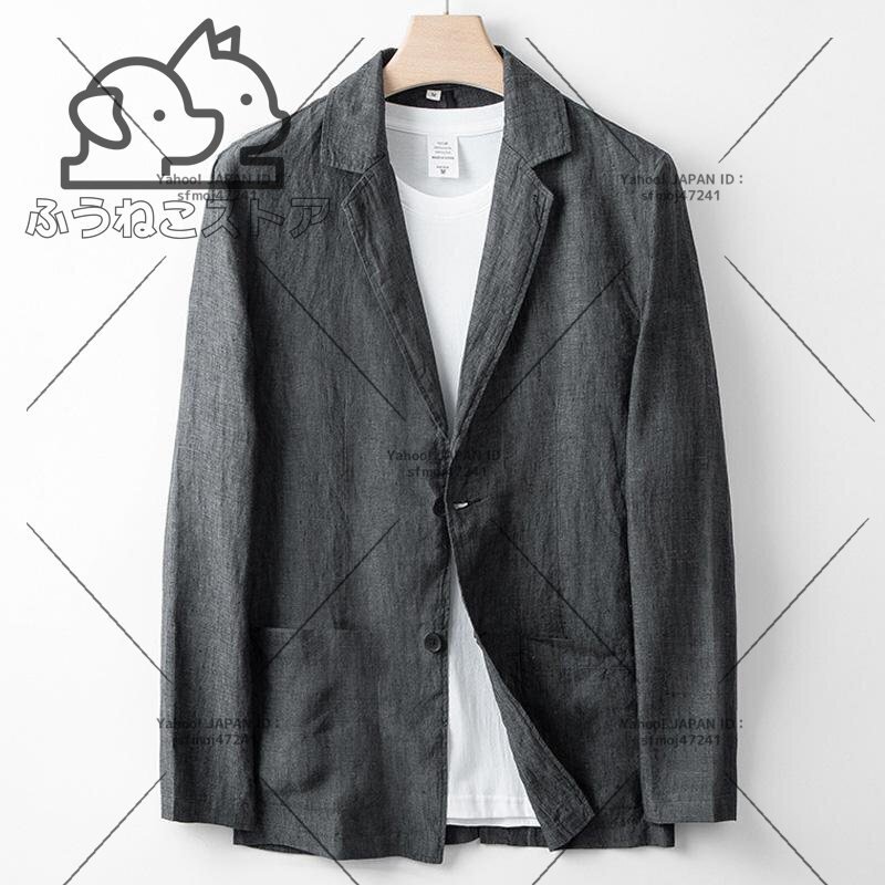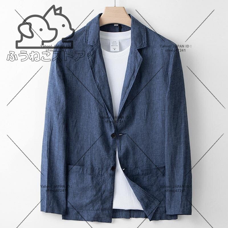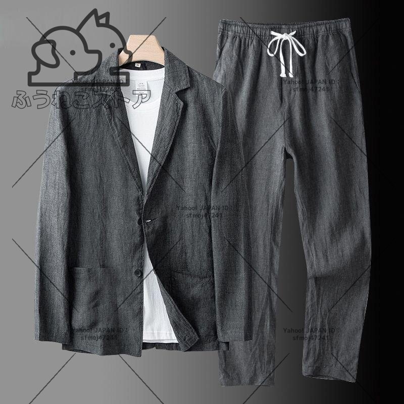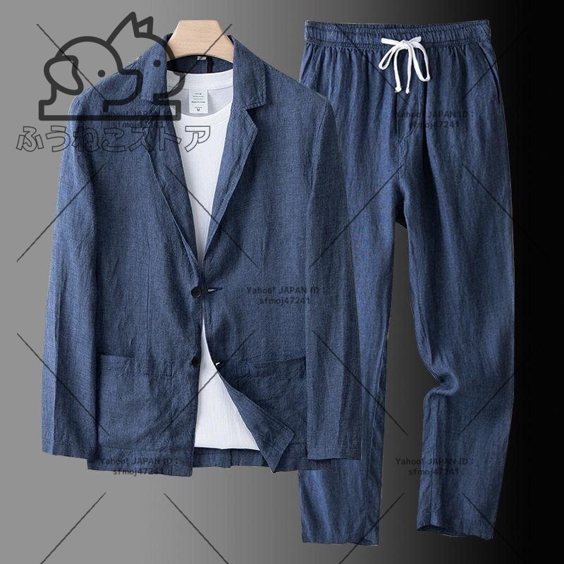 スーツ上下セット セットアップ メンズ テーラードジャケット テーパードパンツ 2点セット 綿麻風 スラックス フォーマル ネイビー M~4XL