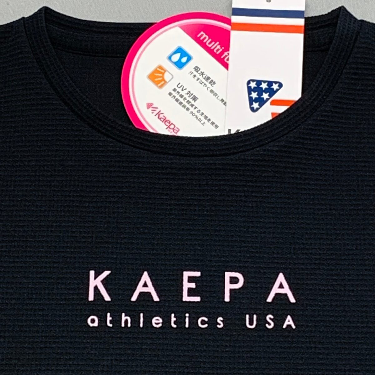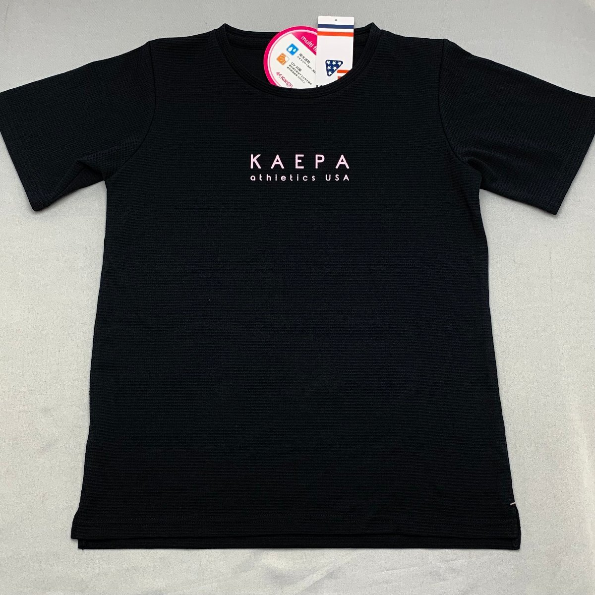 【送料無料】【新品】Kaepa レディース半袖Tシャツ(ワッフル素材 吸水速乾 UVカット)  M   ブラック*ピンク★52102