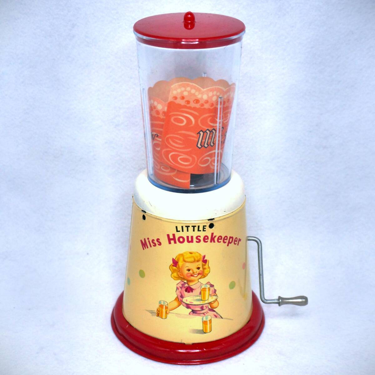 【新品 未使用】昭和時代発売 昭和レトロ 当時物 BLENDER (ブレンダー) LITTLE Miss Housekeeper 幻のおままごとブリキミキサー