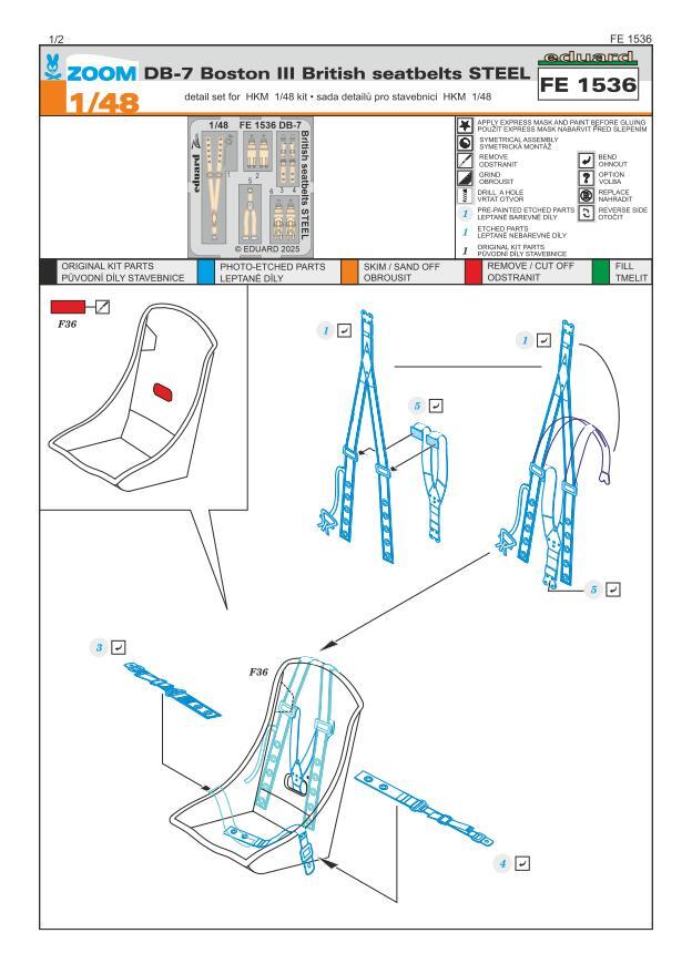 エデュアルドズーム1/48 FE1536 Douglas Boston III/US DB-7B British seatbelts for Hong Kong Models kits