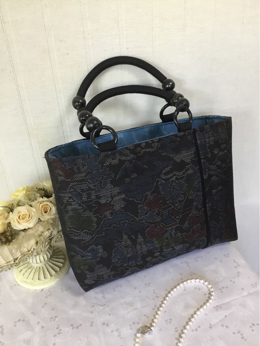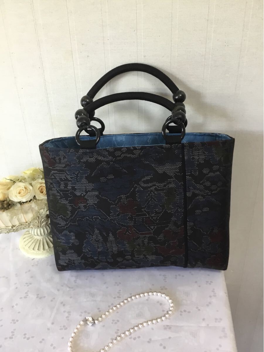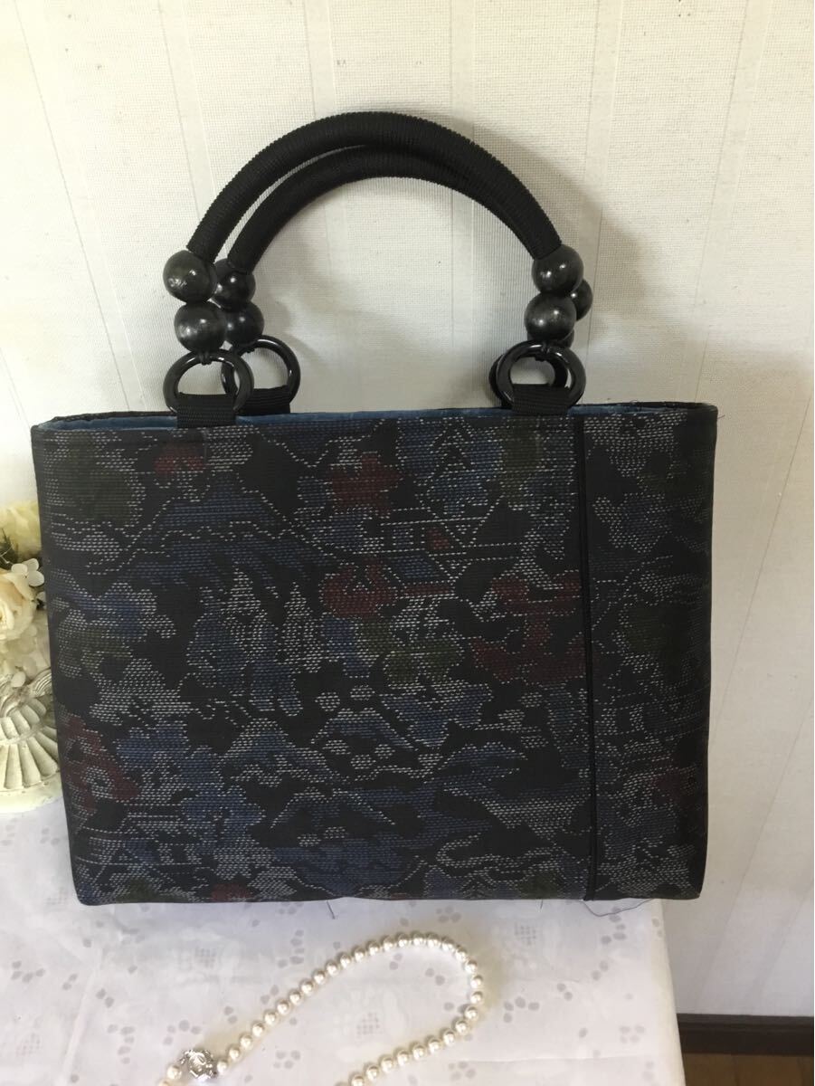 黒地のバックですが角度で模様が浮き出してきます。ちょっと変わった大島紬です