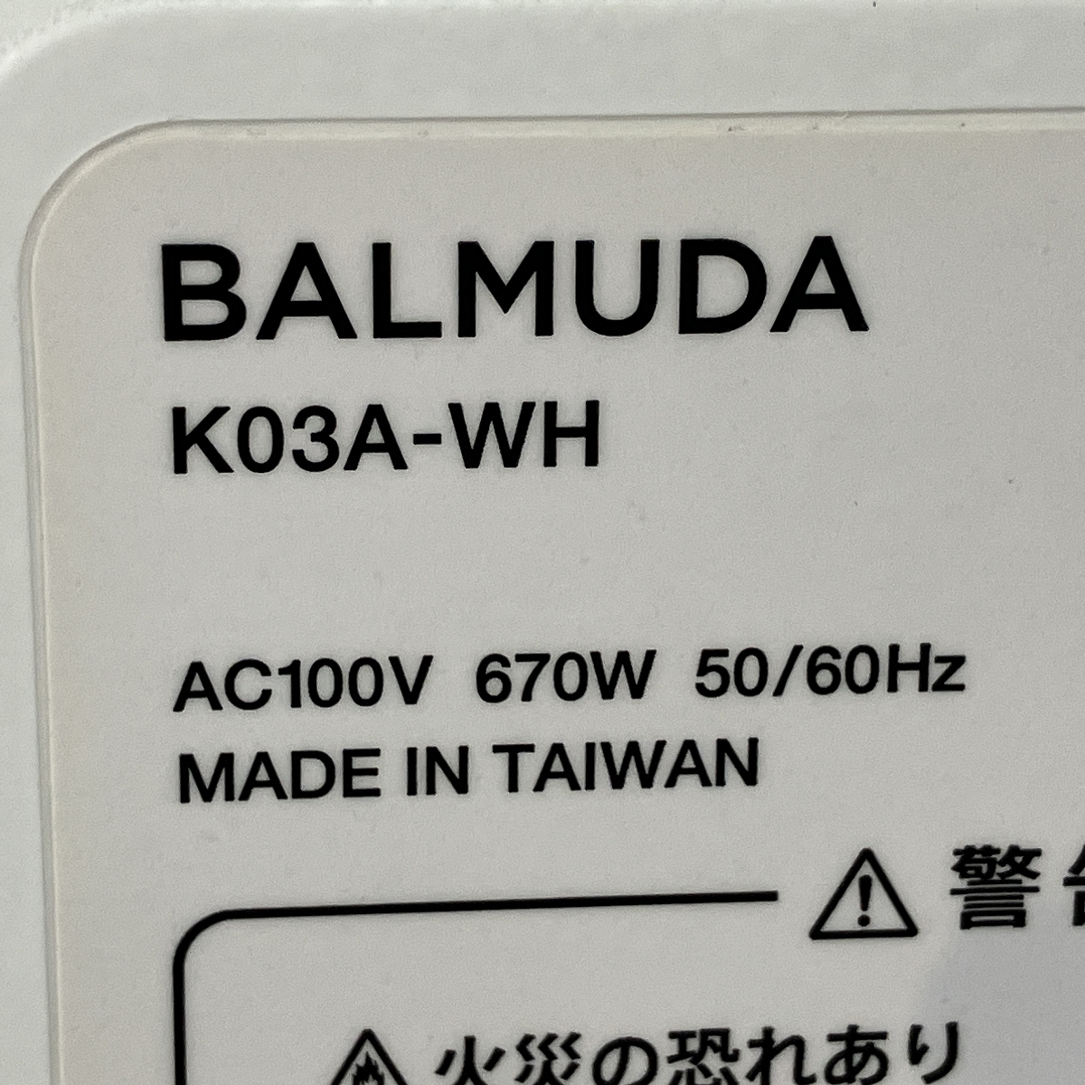 メーカー名 | BALMUDA | 型番 | K03A-WH |