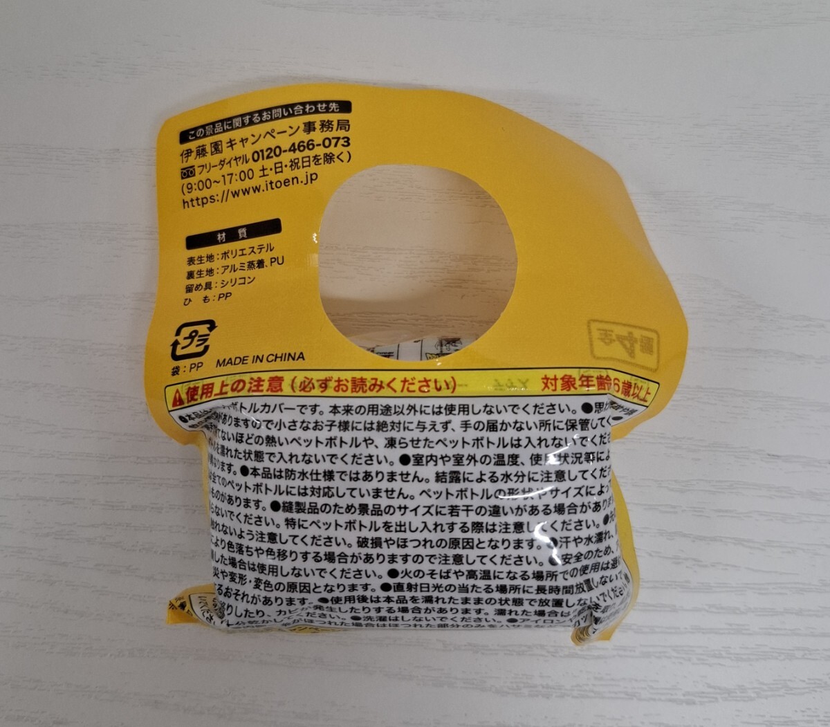 ペットボトルカバーの表生地はポリエステル、裏生地はアルミ蒸着、PUで保温、保冷効果を期待できそうです。