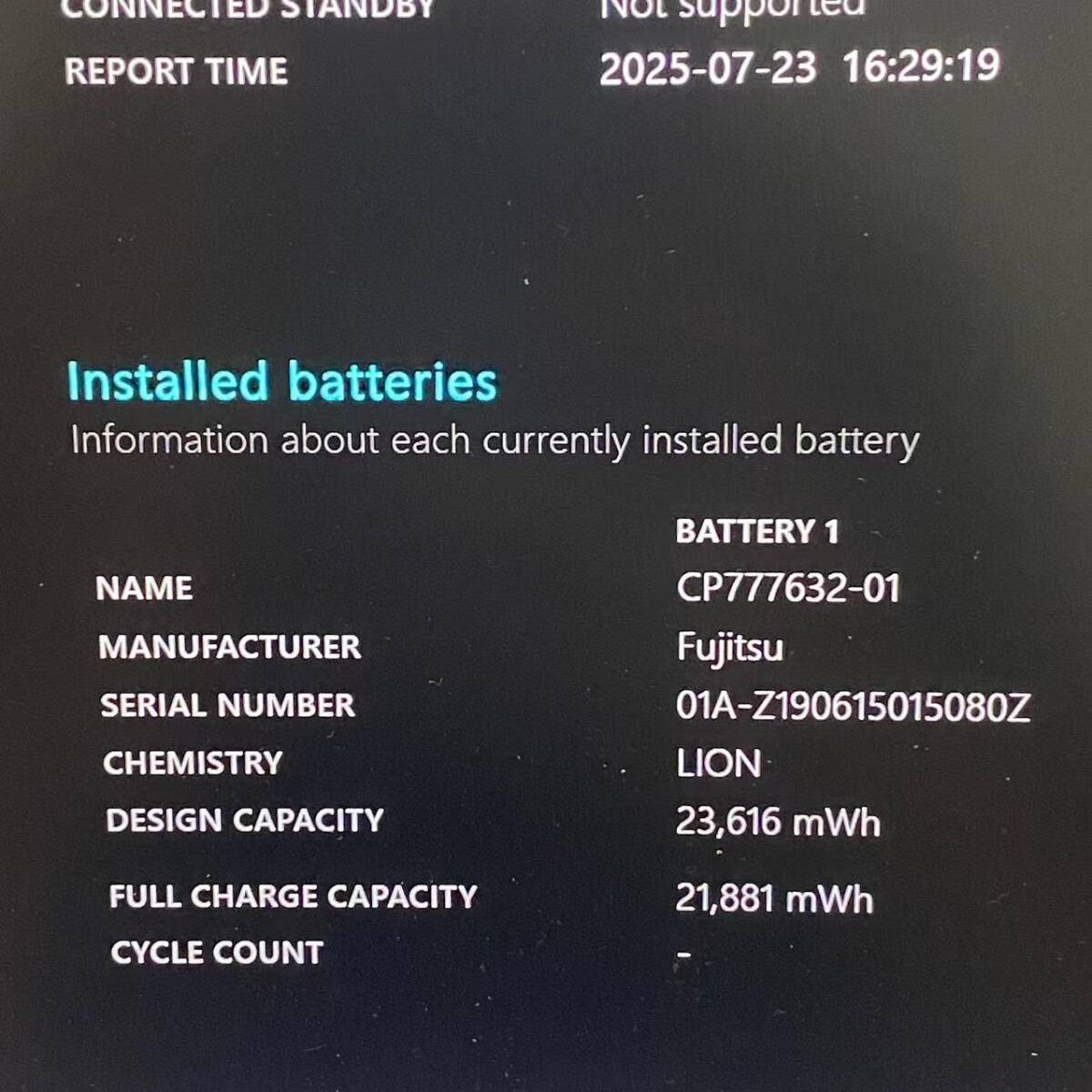バッテリーのレポートは該当の商品に対応したものとなっております。