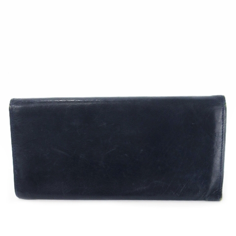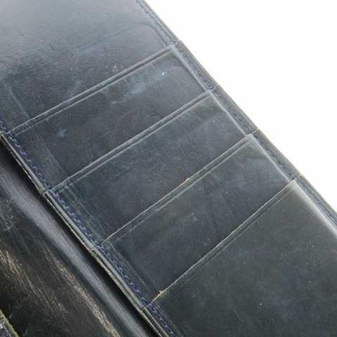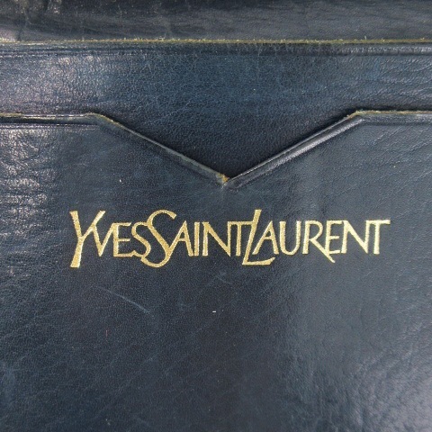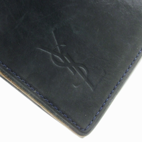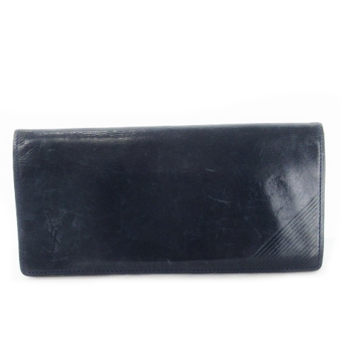 イヴサンローラン YVES SAINT LAURENT 長財布 ロングウォレット 小銭入れあり 二つ折り レザー 革 ロゴ型押し 紺 ネイビー