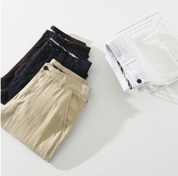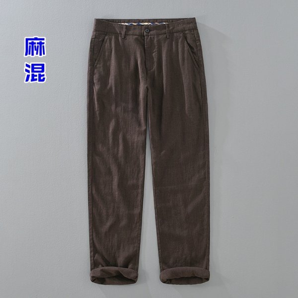 新品・未使用 リネンパンツ メンズ サマーパンツ 麻混ん ロング パンツ スラックス 春夏服通気 ズボン【1353】白 W32