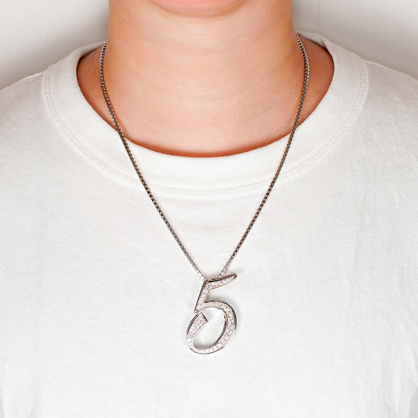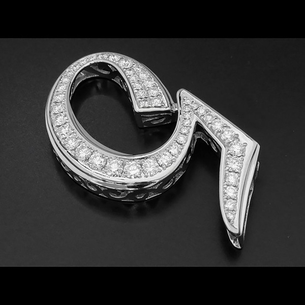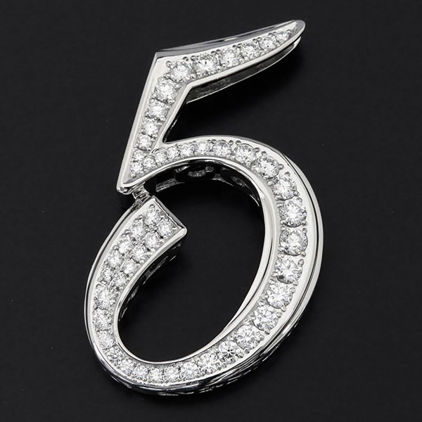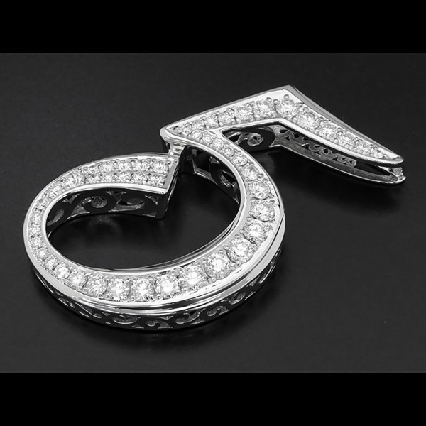 商品説明 | 数字の「5」をモチーフにした大きめペンヘッドです。普通の大きさでは物足りない、胸元に大きなアクセントが欲しい方にピッタリです。質の良い3カラット分のダイヤモンドを贅沢に使用しております。 |