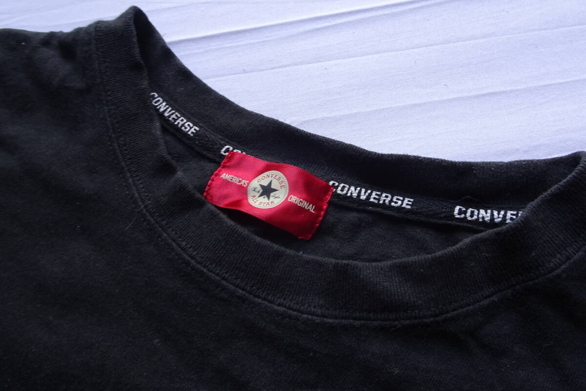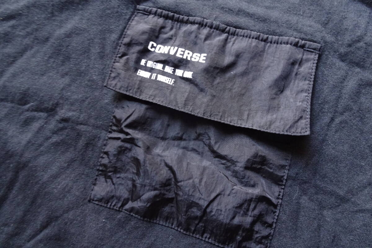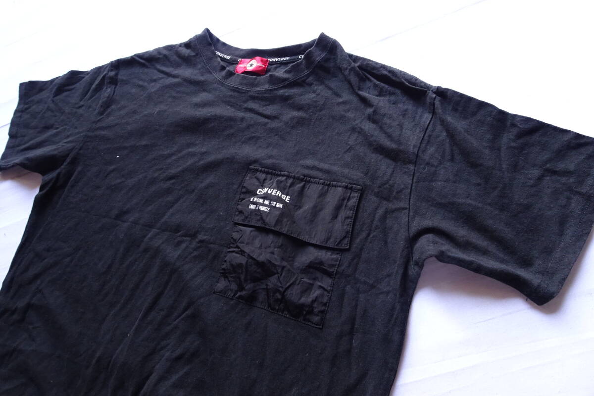 CONVERSE/コンバース/半袖Tシャツ/クルーネック/左胸ナイロン素材フラップポケット/オーバーサイズ/黒/ブラック/Lサイズ(7/23R7)