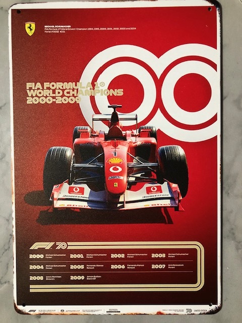 ミハエル・シューマッハ フェラーリ 2000年代 F1 ブリキのアート看板 お部屋に・ガレージに!送料サービス 誰も持ってない?
