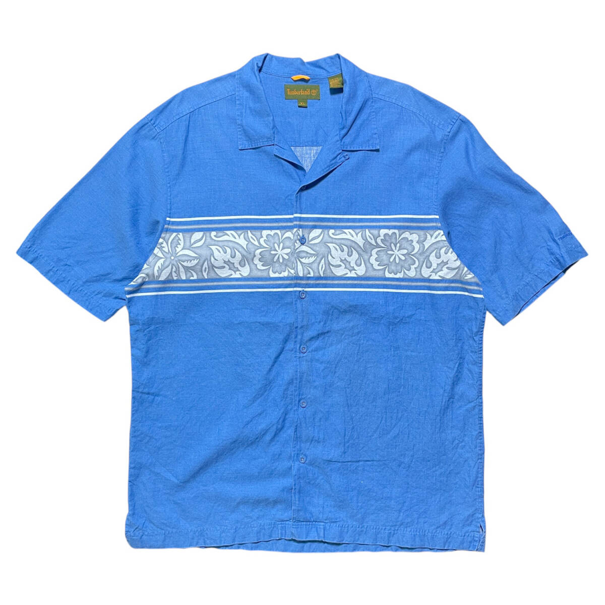 Timberland ティンバーランド リネン/コットン 開襟 アロハシャツ ハワイアンシャツ ブルー メンズXL BF3734