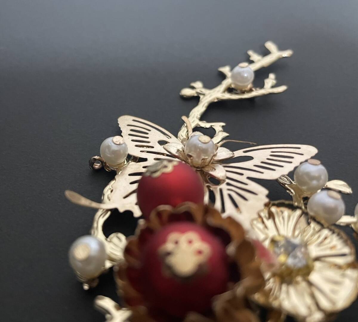 8枚目で梅の質感、9枚目でピンの裏側やイヤリングの留め具を見ることが出来ます!