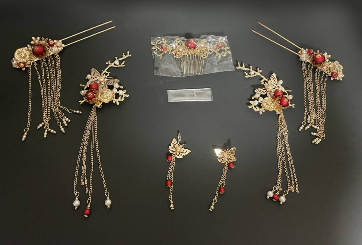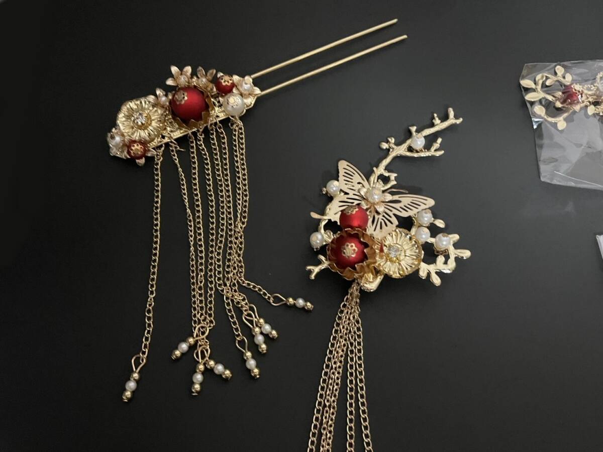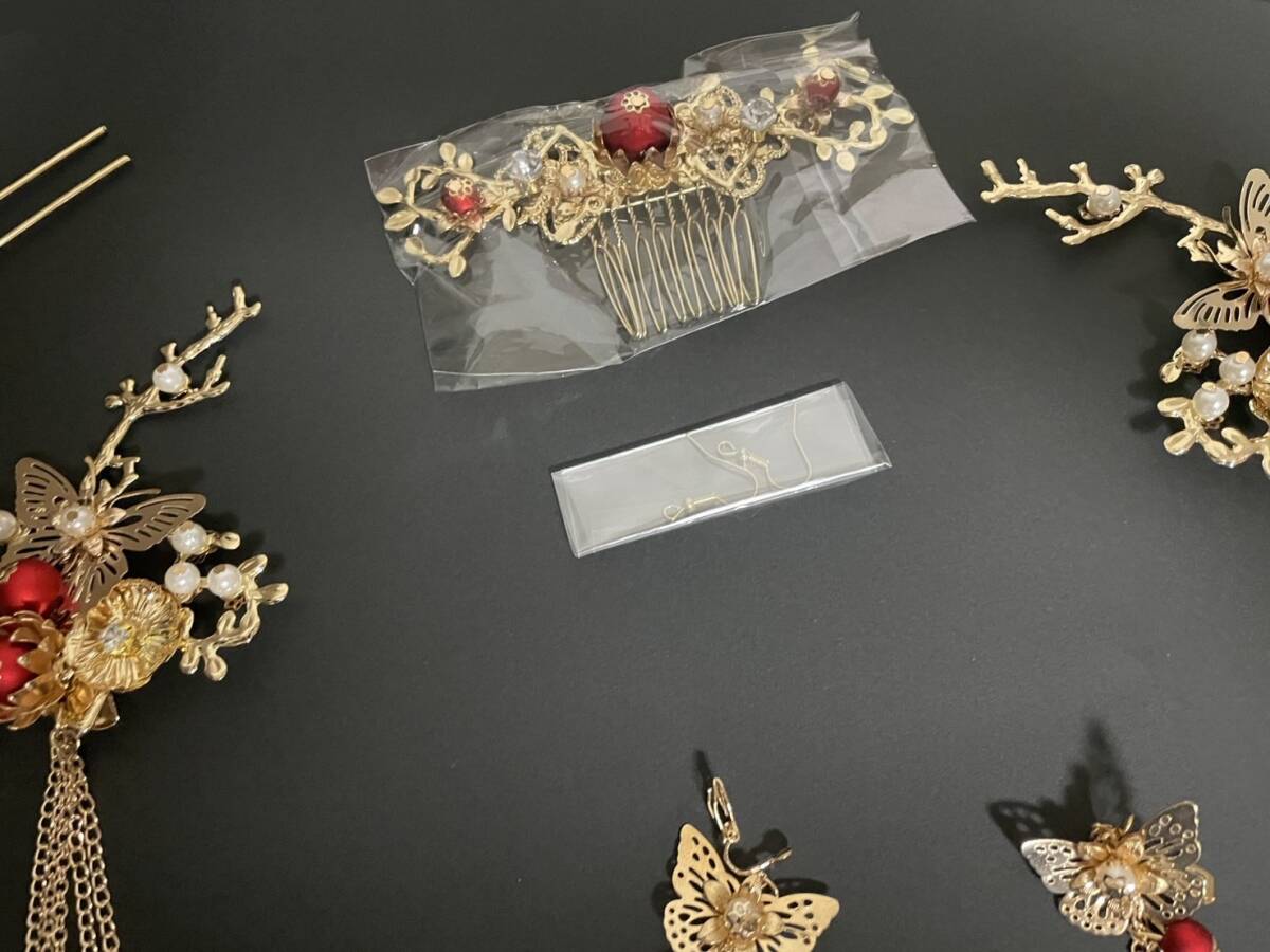 髪飾り 皇女 梅 蝶  古代 髪留め ヘアアクセサリー かんざし セット 中華 中国 古代宮廷 王女皇 髪飾り 披露宴 和装 ゴールド
