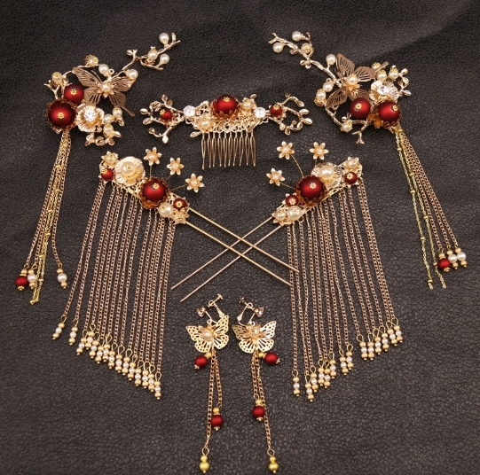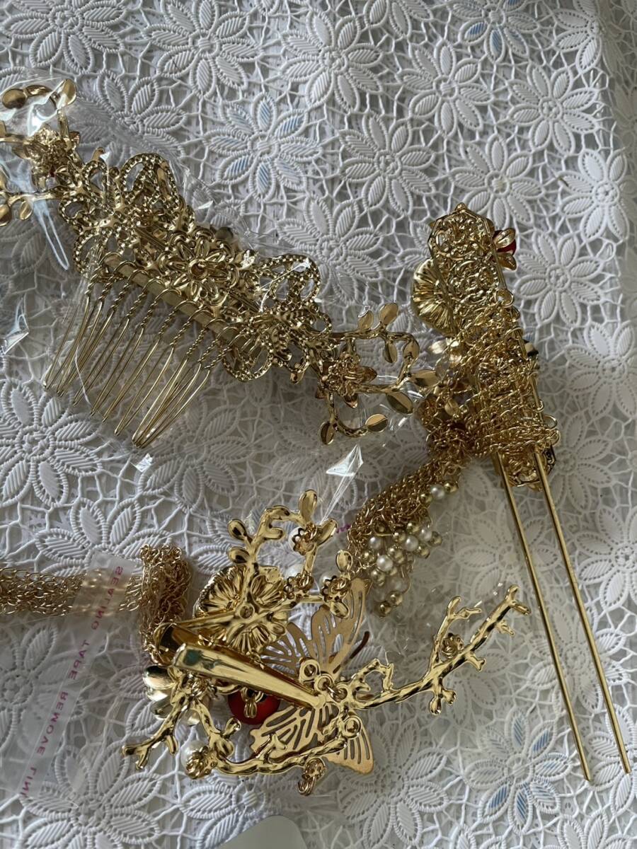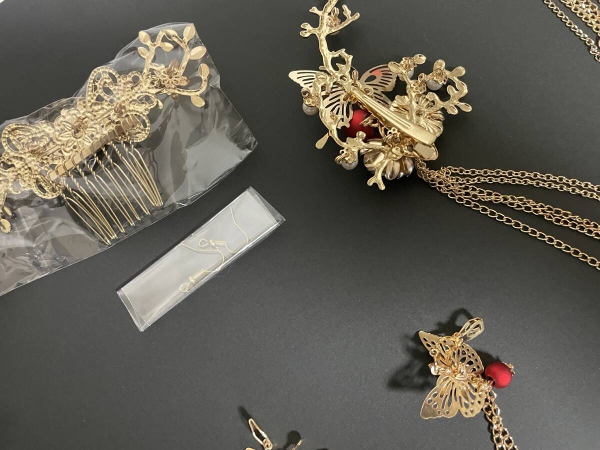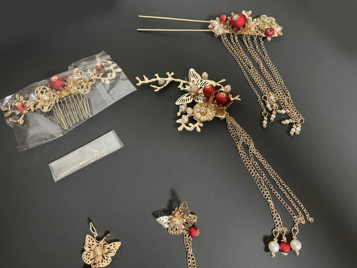 髪飾り 皇女 梅 蝶  古代 髪留め ヘアアクセサリー かんざし セット 中華 中国 古代宮廷 王女皇 髪飾り 披露宴 和装 ゴールド