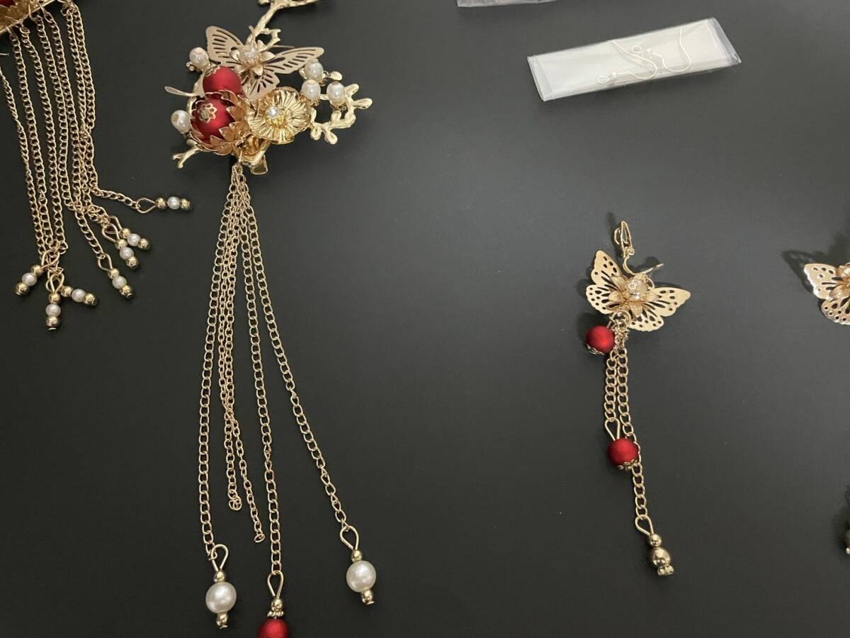 ティアラ風簪、簪、ヘアピン、イヤリングがあります。計7点。