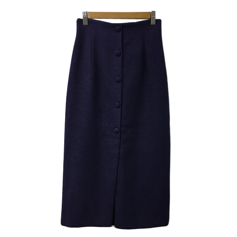 【仕様】左サイドにファスナーがあります。 バックウエストの中央はゴム仕様です。 フロントボタンは飾りです。 約32cmのフロントスリットが入っています。 裏地は付いていません。
