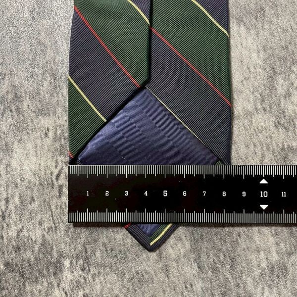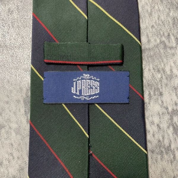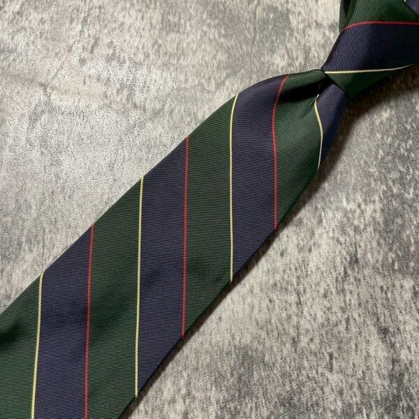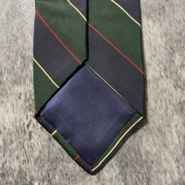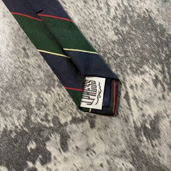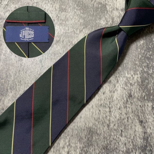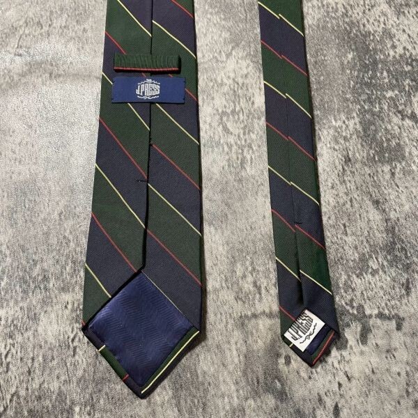 [KN254] JPRESS ネイビー グリーン ストライプ シルク ネクタイ