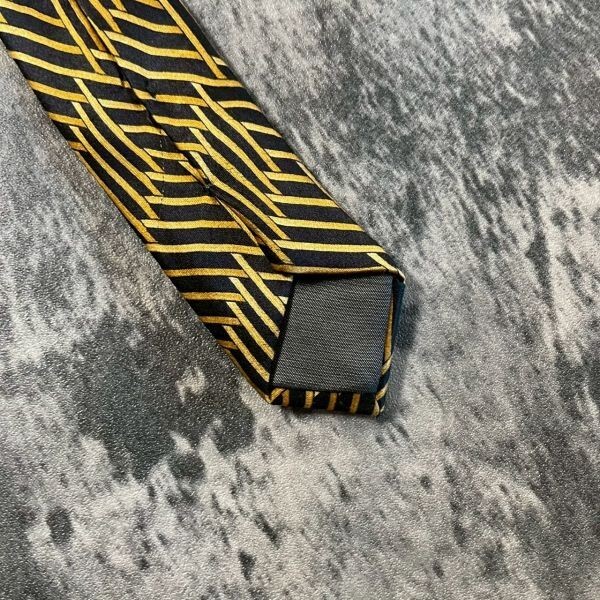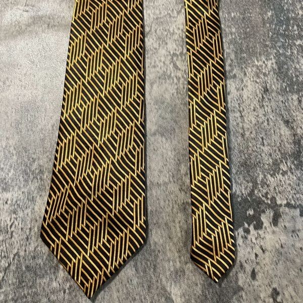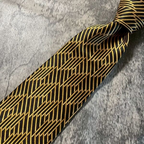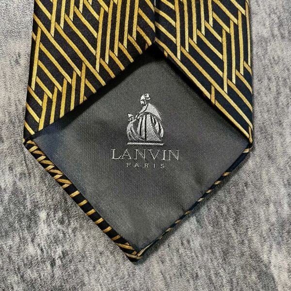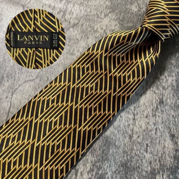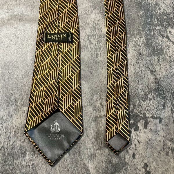[KN224] LANVIN ブラック×ゴールド シルク ネクタイ