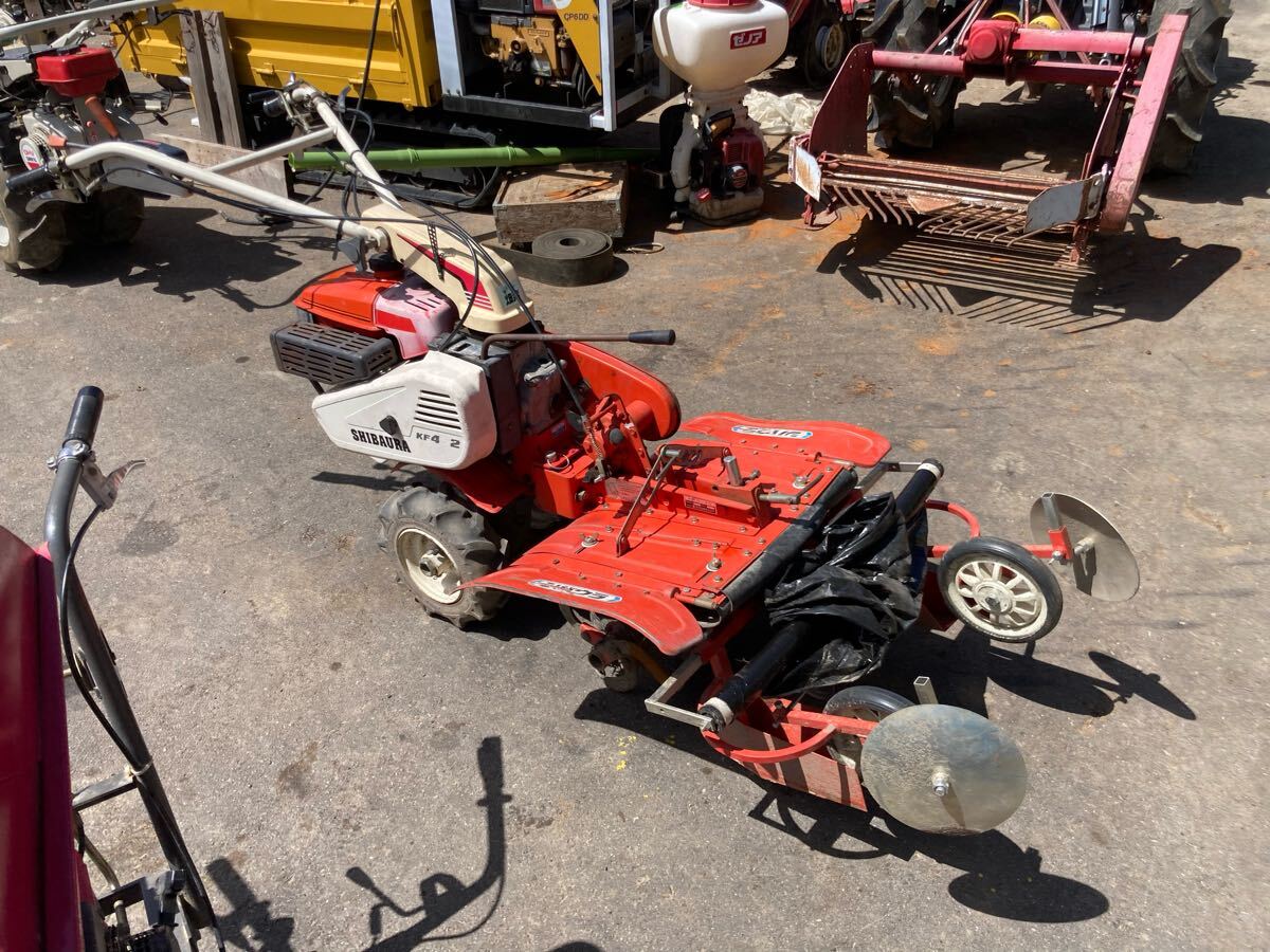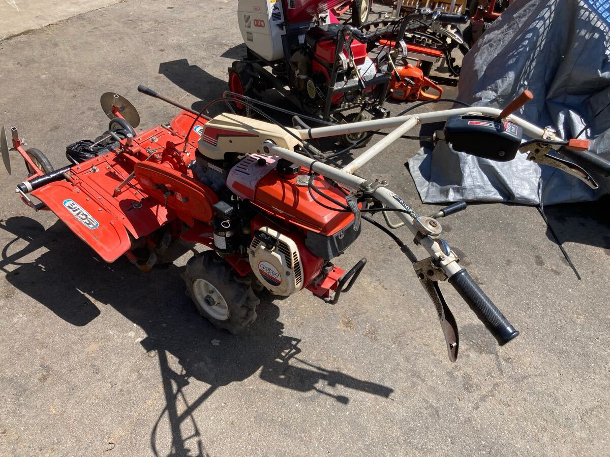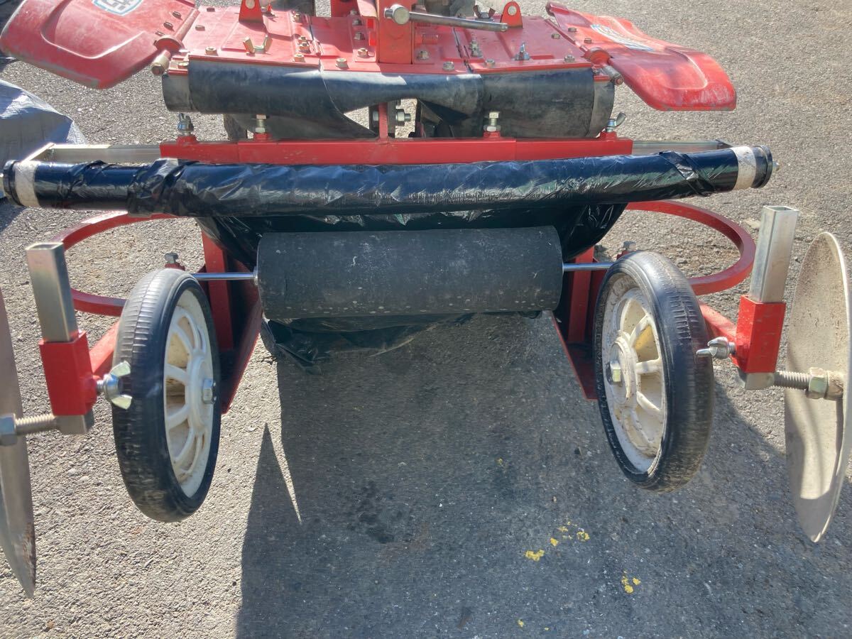 動作確認済み。正常動作してます。耕運作業とマルチ引きが両方可能。使用できるマルチは90cm前後のものまで。狭い場所や幅を狭くたくさんマルチを引きたい方向け。マルチ機はほぼ新品のようです。