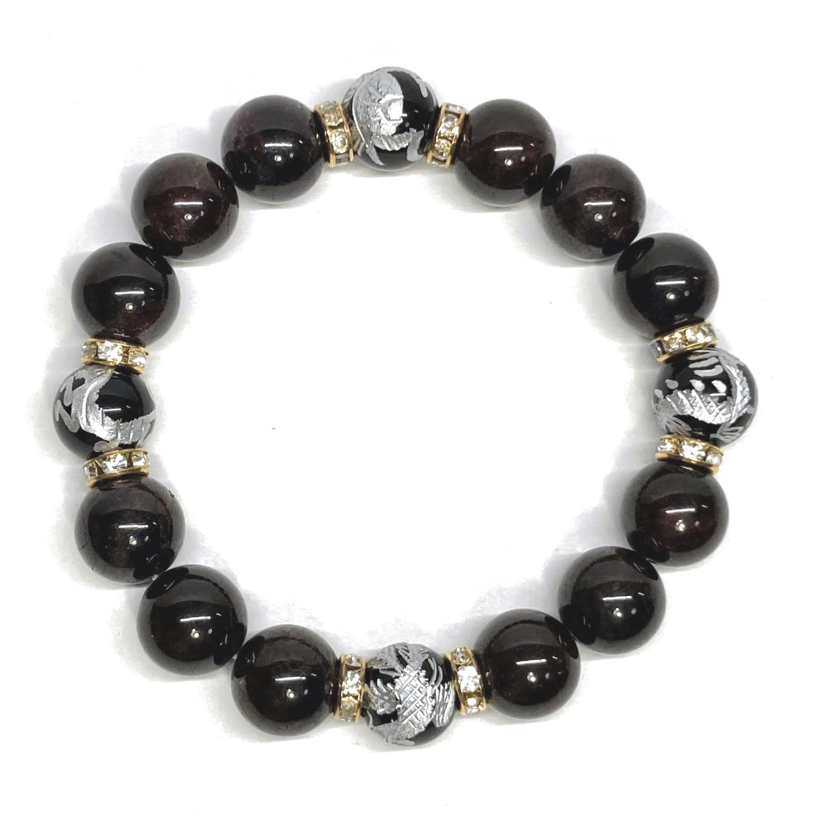 四神獣銀彫オニキス×ガーネット 12mm パワーストーン ブレスレット天然石 青龍 白虎 玄武 朱雀 運気上昇 開運 金運 お守り 四神相応 G