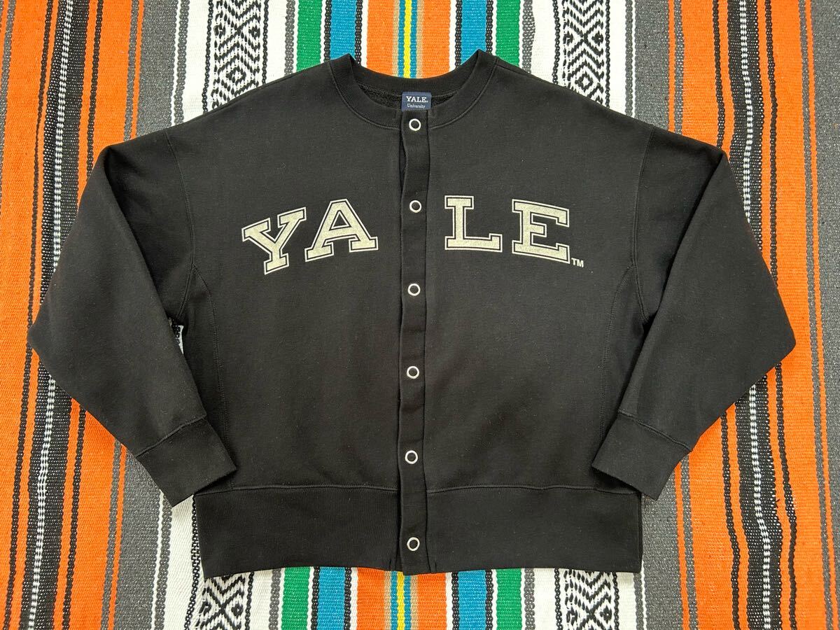 送料無料 YALE大学 イェール大学 スナップボタン カーディガン スウェット Mサイズ ブラック 黒 リバースウィーブ ヴィンテージ