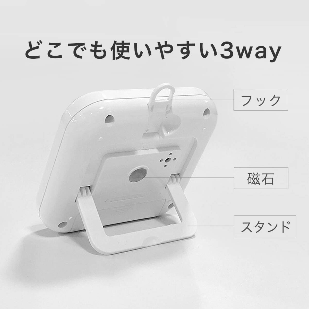 ・【マグネット付きで冷蔵庫にも】3wayで使えるスタンド、強力磁石、フック穴付き。用途に合わせて目のつく場所に置いたり、掛けたりすることができるため使いやすさ抜群!