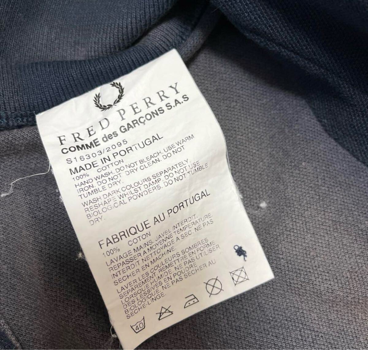FRED PERRY フレッドペリー COMME des GARCONS コムデギャルソン シャツ コラボ ワンポイントロゴ シンプルロゴ 刺繍 ポロシャツ サイズS 半袖 ポルトガル製 鹿の子 リブライン 送料無料の出品です。