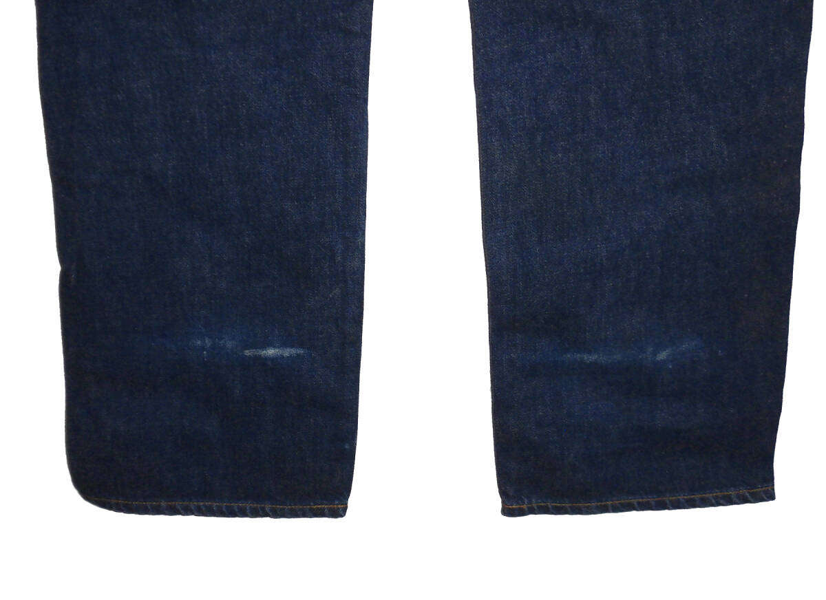 全体的な若干の色落ち、裾付近にロールアップによる薄い擦れ、生地ダメージが見られます。