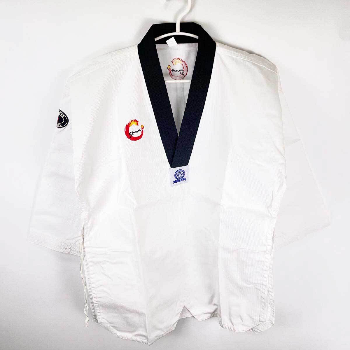 | ※商品は画像にあるものがすべてとなります。 【仕様】 タイプ:SMAI Taekwond テコンドー 道着 170 身幅:約60cm 着丈:約75cm 総丈:約100cm ウエスト:約29cm 【状態】 未使用ですが、長期保管で汚れがあります。 |