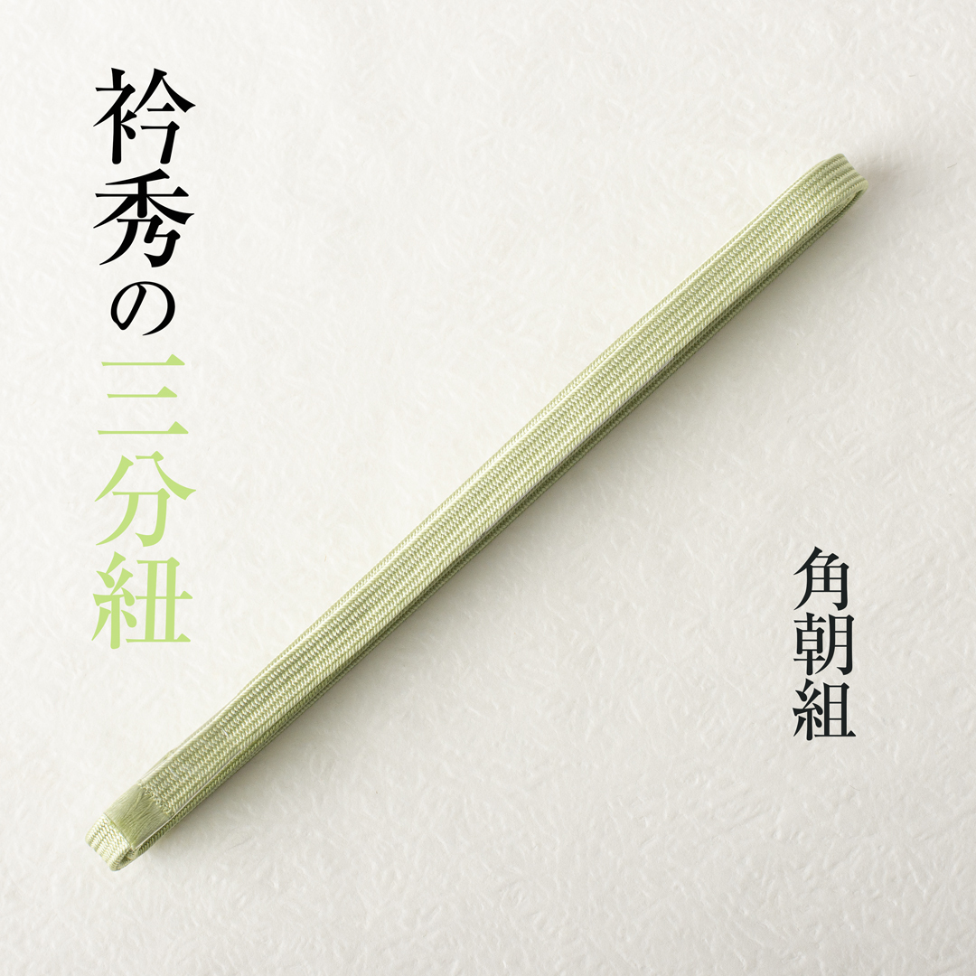 ・定番の角朝組。帯留を引き立てるすっきりとした組紐です。