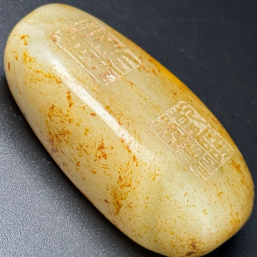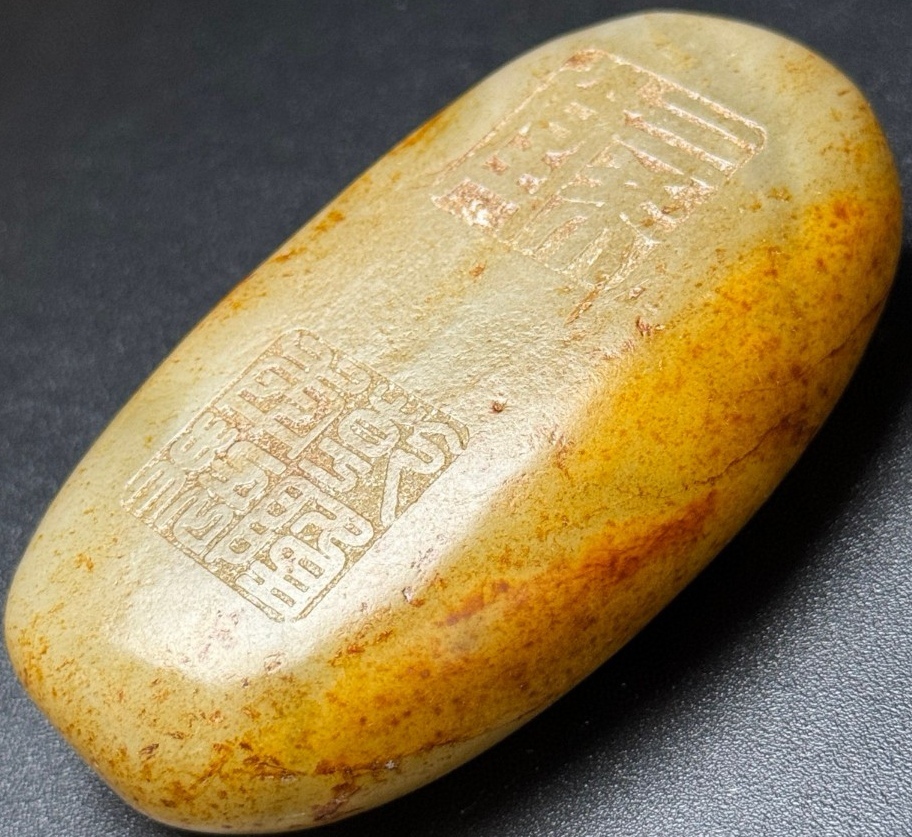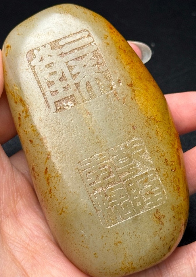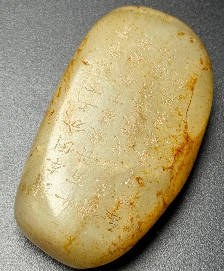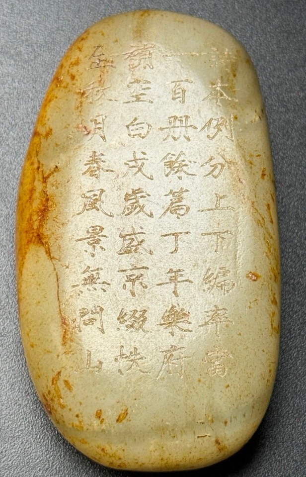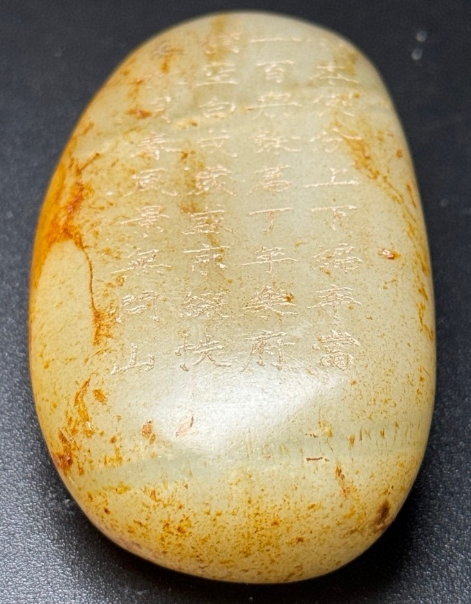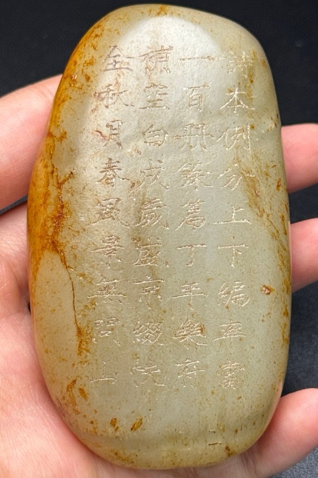 旧藏 和田玉 原石手把件 雕刻詩文 古賞物 中国古美術 S77