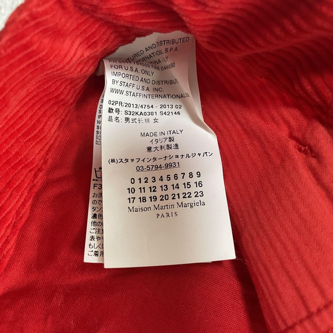 細いコーデュロイのパンツです。落ち着いた赤なのでどんな色にでも合わせやすいと思います。イタリア製です。よろしくお願いします。