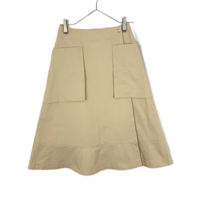 | 【コメント】 大きめパッチポケットが印象的なスカートです。ウエスト後ろ側がゴムで穿きやすいデザイン。正面ポケット近くに小さな点汚れがありますが、その他気になる所はなく全体的に綺麗なお品物です。  |