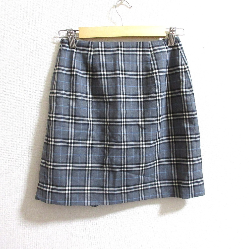 美品 BURBERRY BLUE LABEL バーバリーブルーレーベル ヴィンテージ ウール チェック柄 タイト ミニスカート サイズ36 グレー