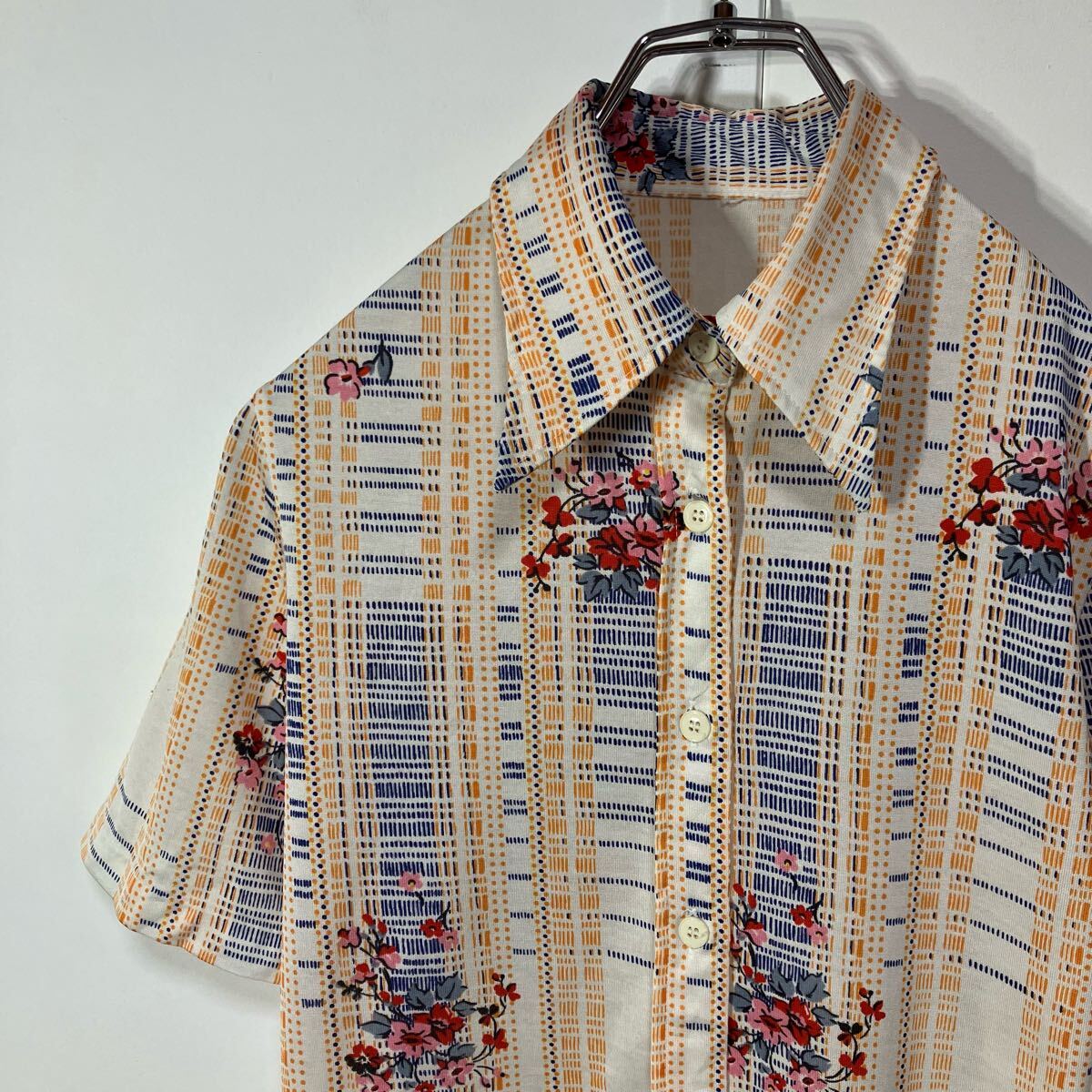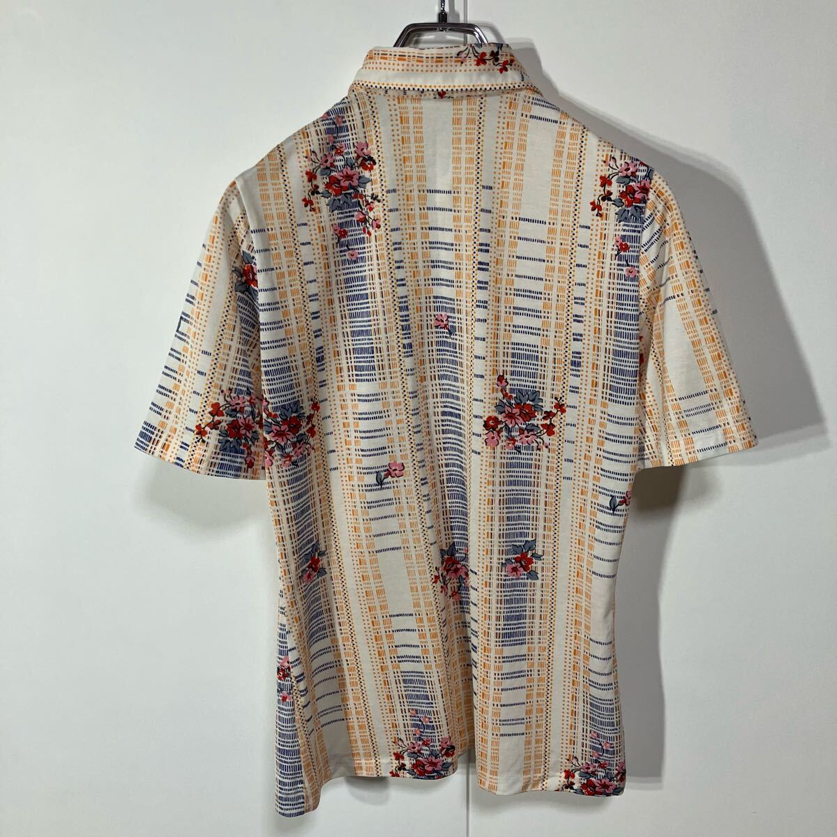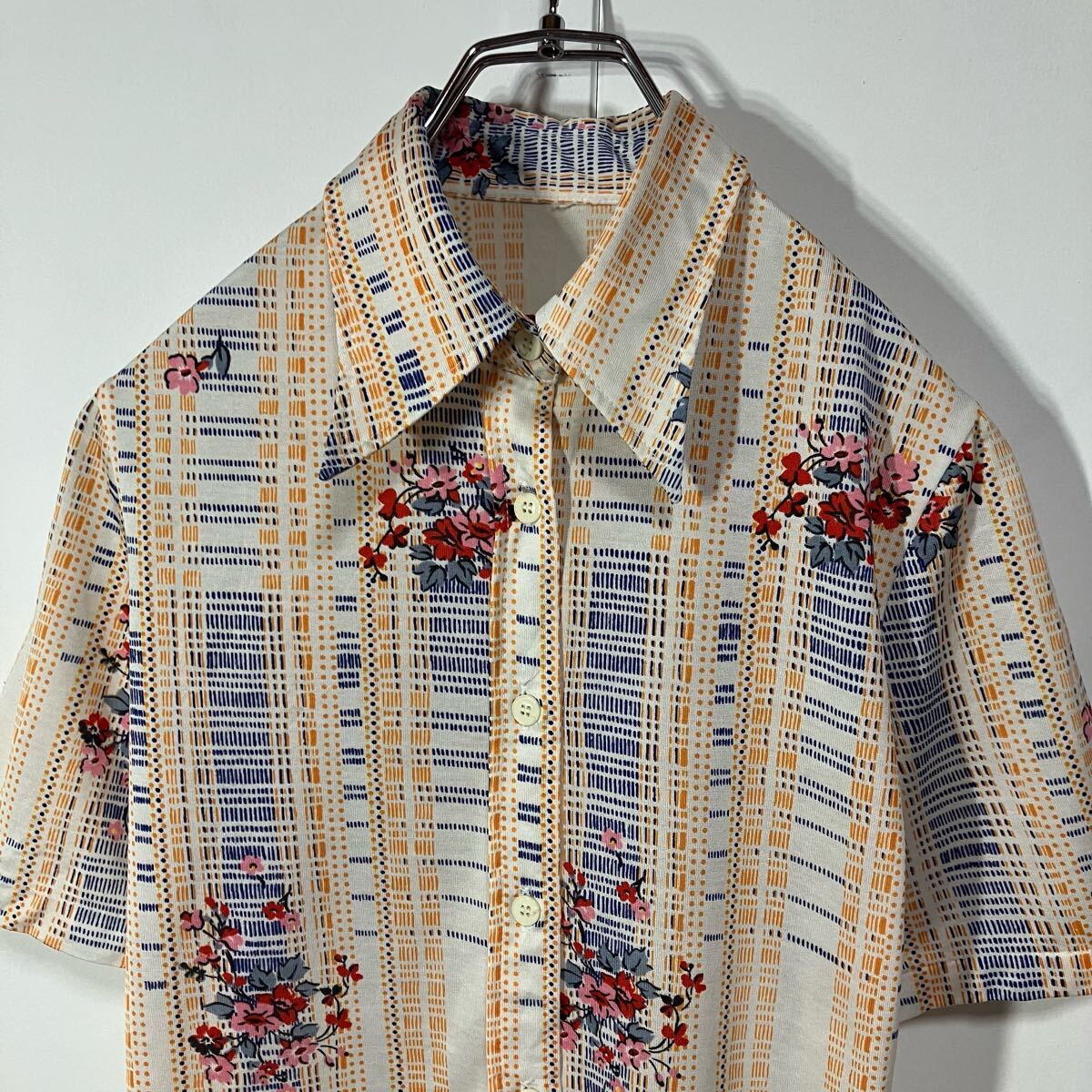 ヴィンテージ 花柄 パターン柄 レトロ 透け感 スクエアカット ニット 半袖 シャツ 古着