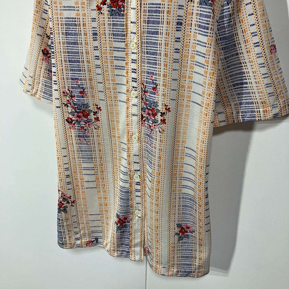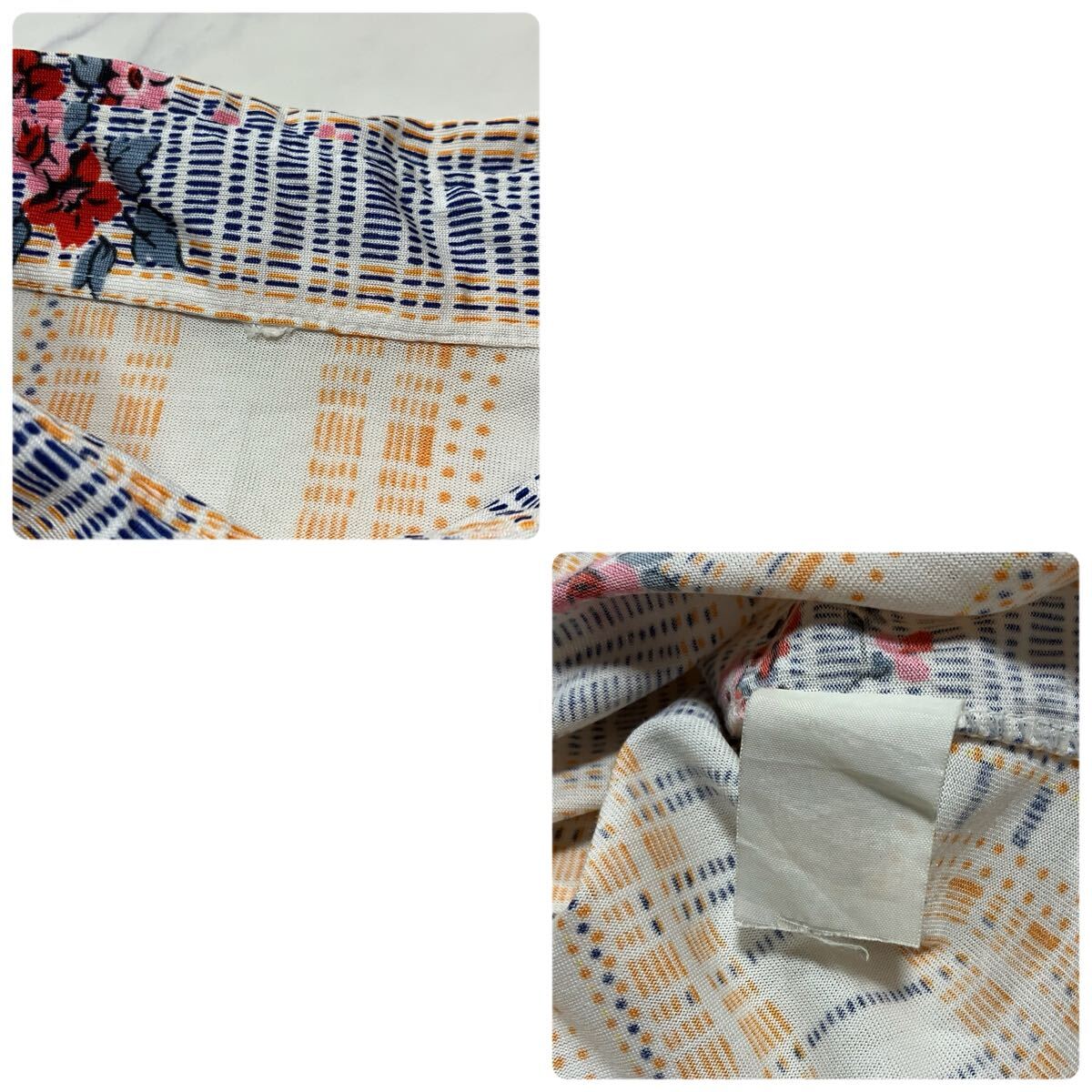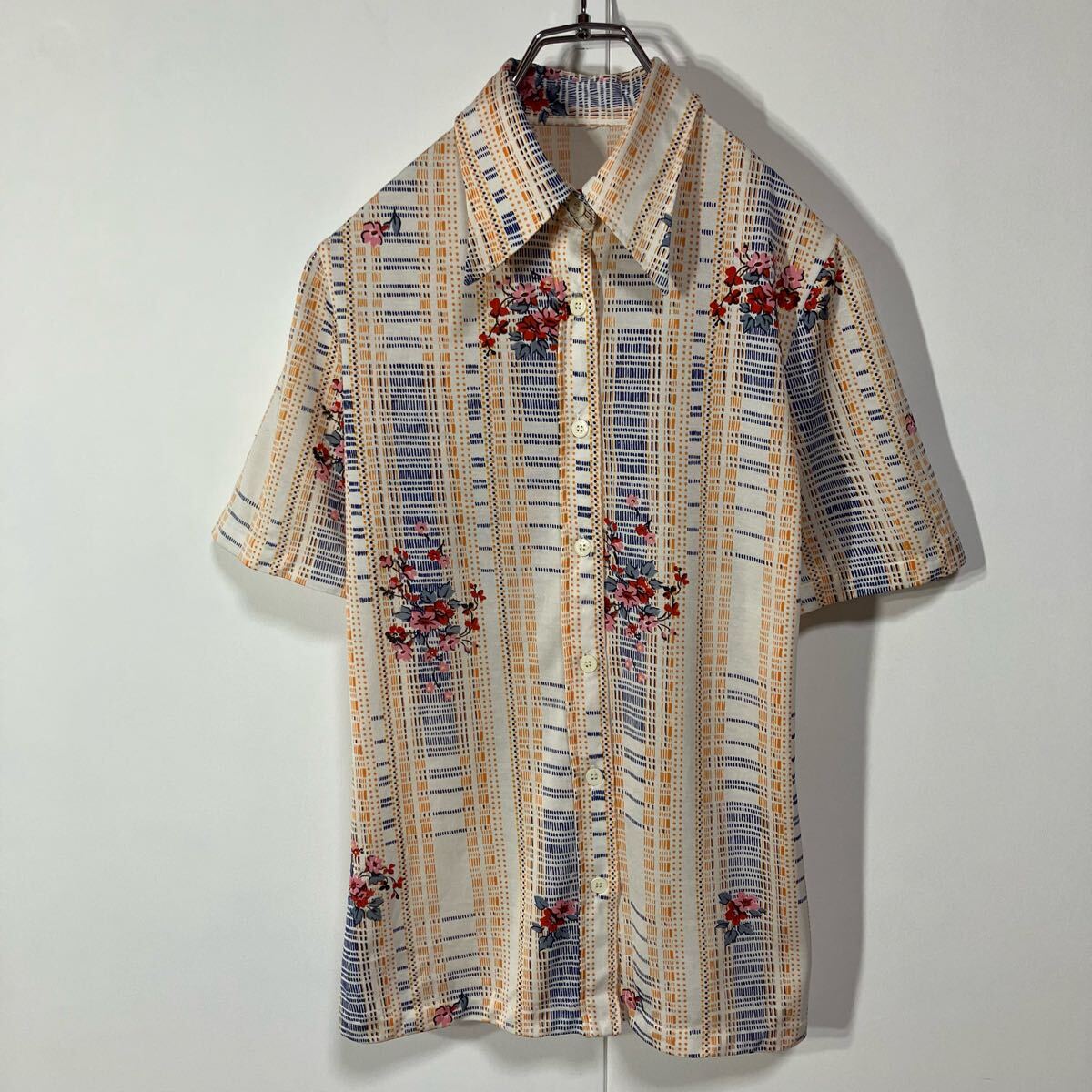 ヴィンテージ 花柄 パターン柄 レトロ 透け感 スクエアカット ニット 半袖 シャツ 古着