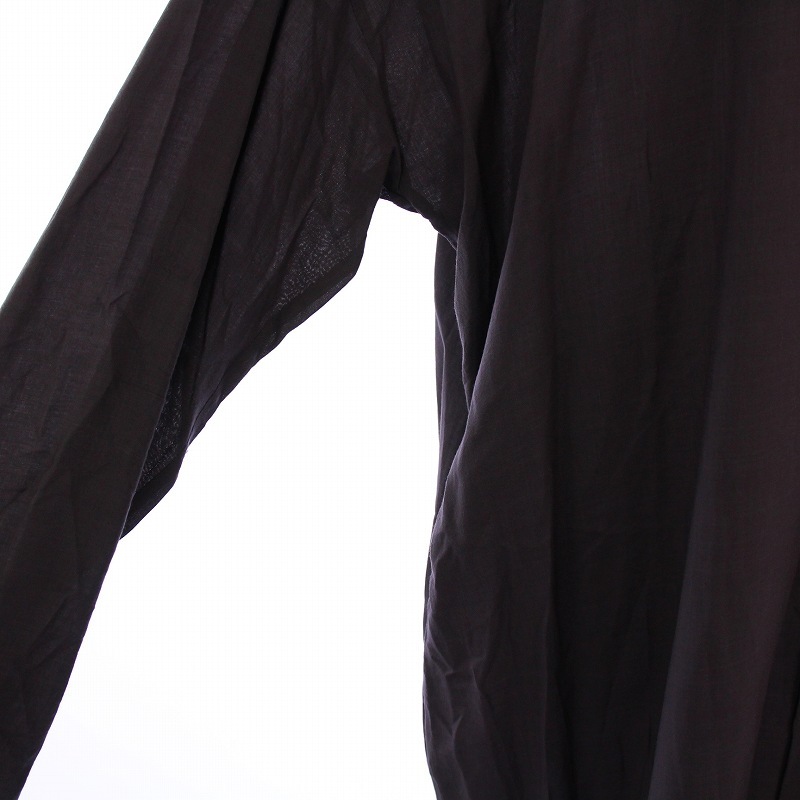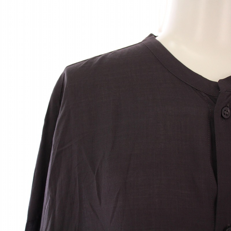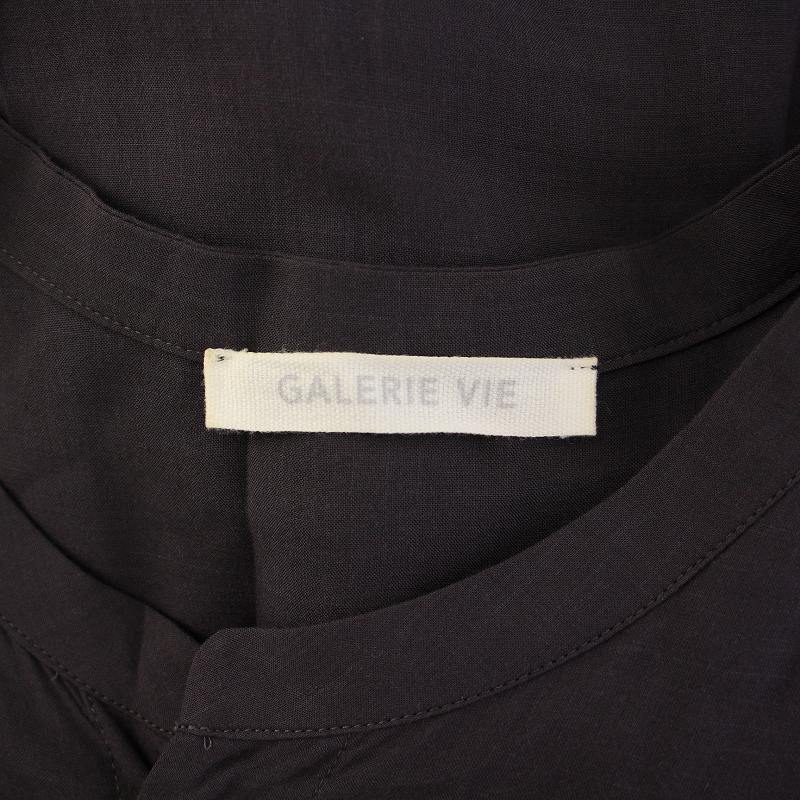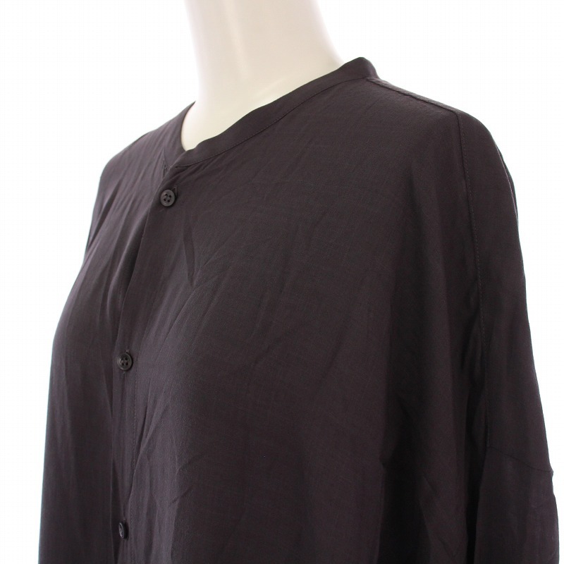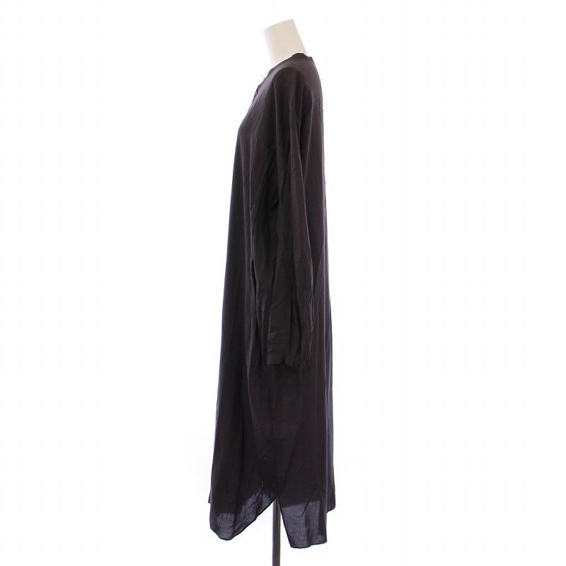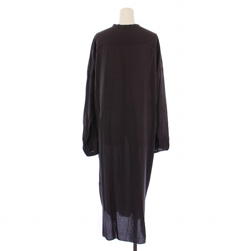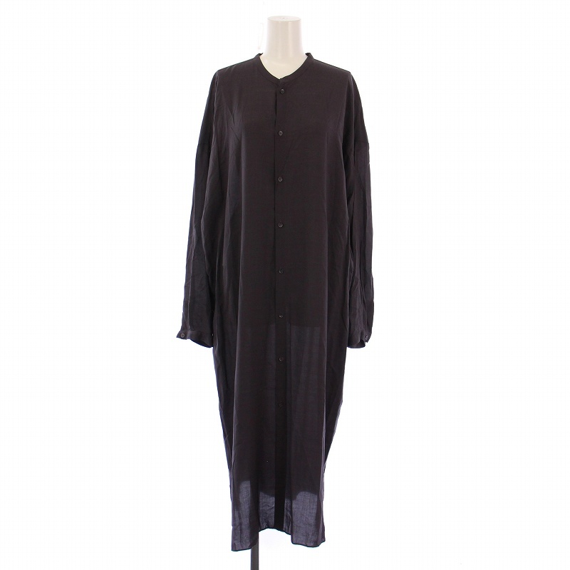ギャルリーヴィー ウォッシャブルレーヨンワイドシャツワンピース ミモレ ロング 長袖 バンドカラー 無地 36 チャコールグレー