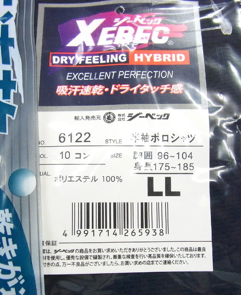 新品未使用 XEBEC ジーベック ハイブリッド 半袖ポロシャツ 6122 ドライ 吸汗速乾 サイズLL ネイビー 作業服 ポリエステル100%