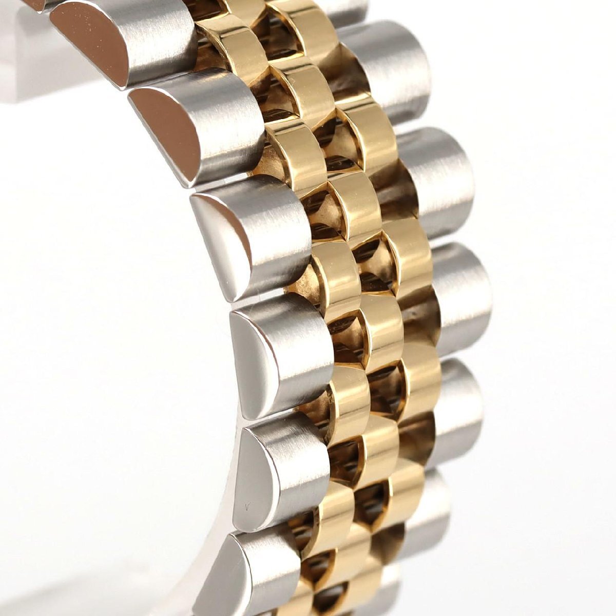 ロレックス伝統の王道モデル「デイトジャスト」。自動巻機能、防水性能、日付の瞬時切り替えという3大発明を詰め込んだ傑作モデルです。その中でもこちらは、18金イエローゴールドとステンレスのコンビモデル。デイトジャストの定番ともいえる、5列ジュビリーブレスレットを備えています。細かいコマが連なっているため、腕に馴染みやすく、フォーマルな印象を与えてくれます。