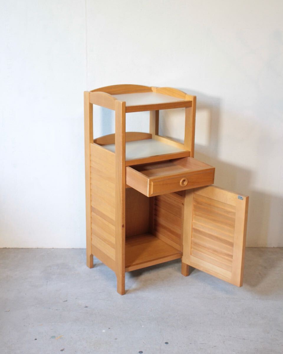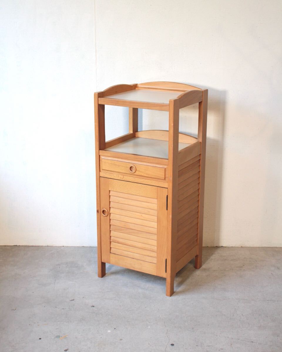 オールドカリモク 木製サイドキャビネット テレフォンラック 収納家具 飾り台 電話台 飾り棚 小さめ コンパクト ヴィンテージ レトロ 12872