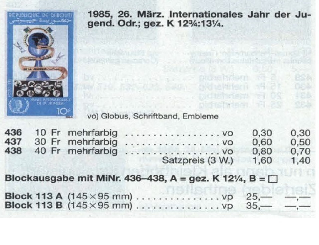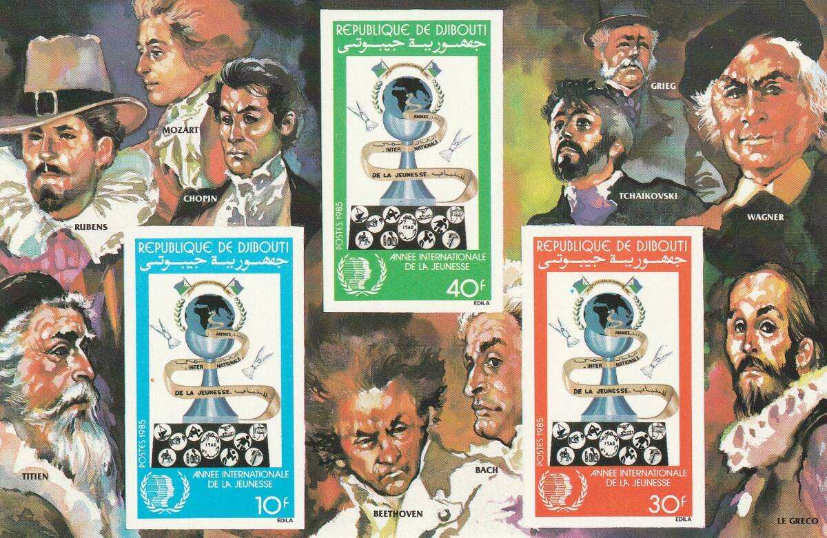 (ジブチ)1985年世界青年イヤー小型シート無目打ち、マイケルカタログ評価35ユーロ(海外より発送、説明欄参照)