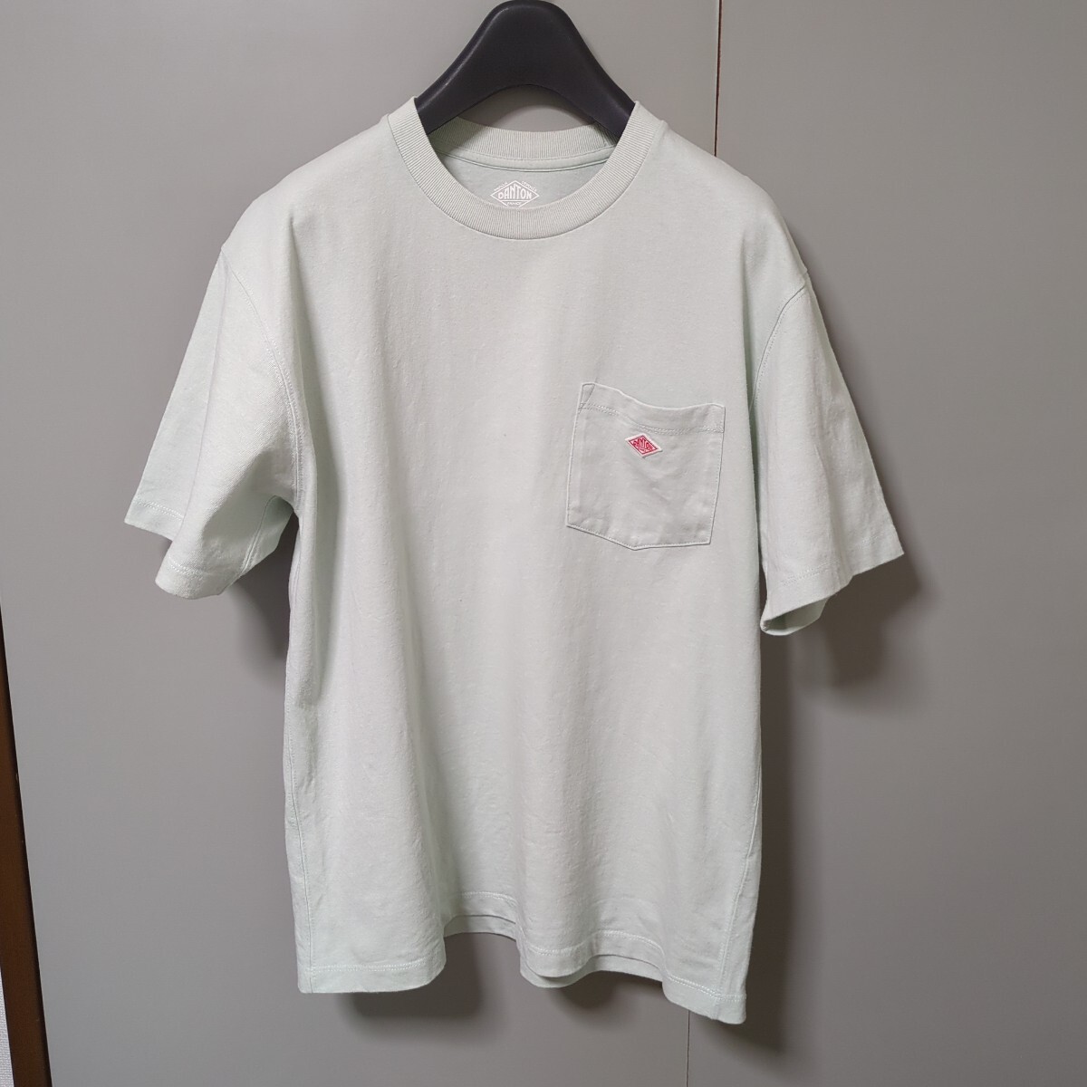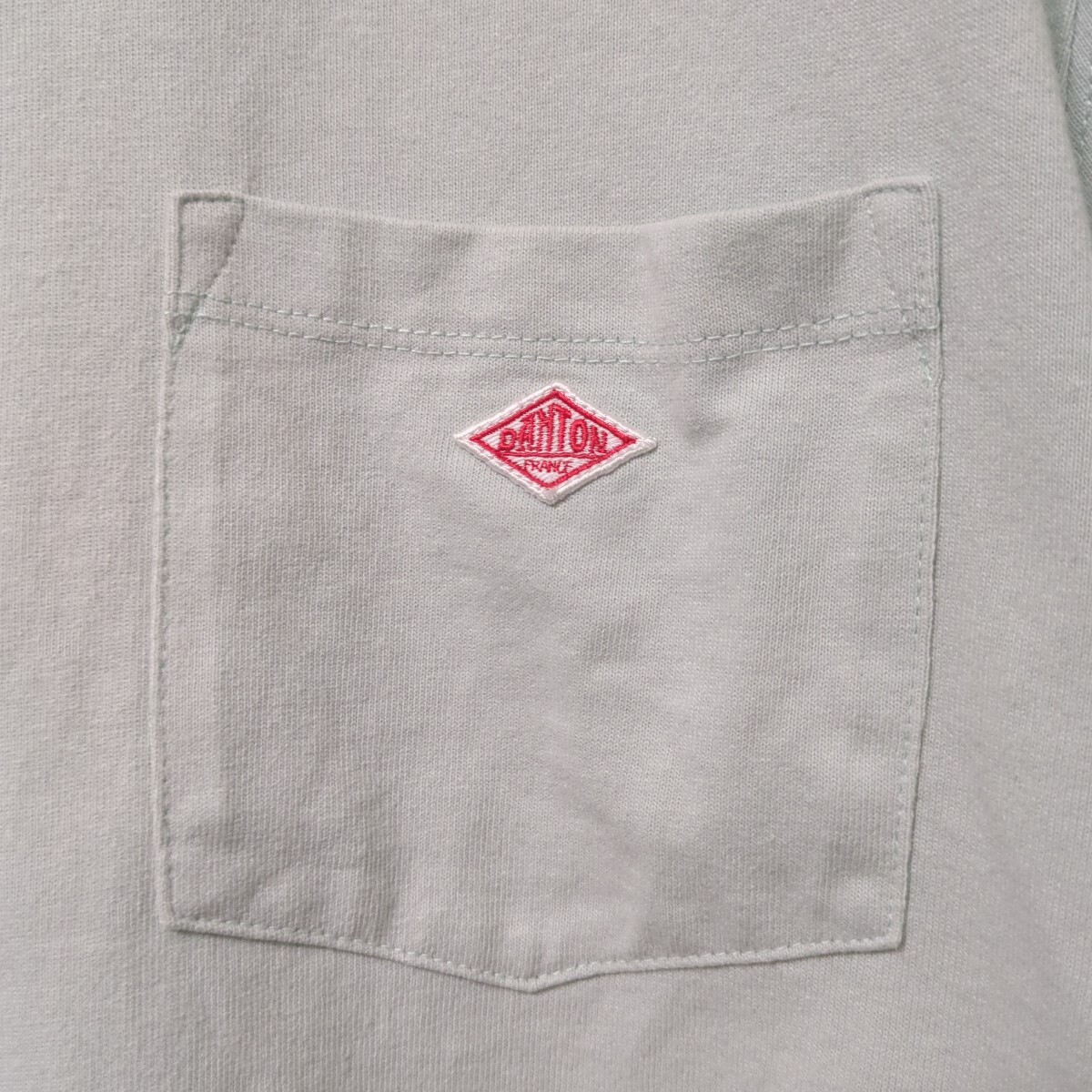 ロゴ入り刺繍ワッペンやポケット、ミントグリーンの発色がおしゃれなDANTONのポケットTシャツです。