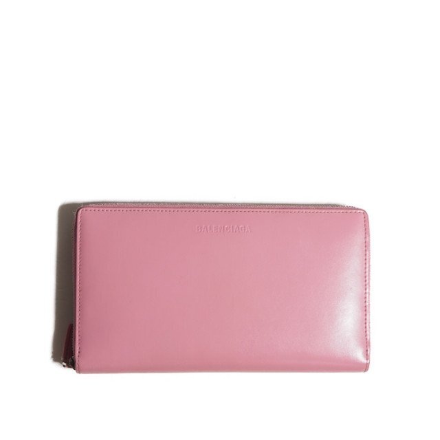 R0961f18 ▼BALENCIAGA バレンシアガ▼ ラウンドファスナー 長財布 ピンク / レザー ウォレット レディース
