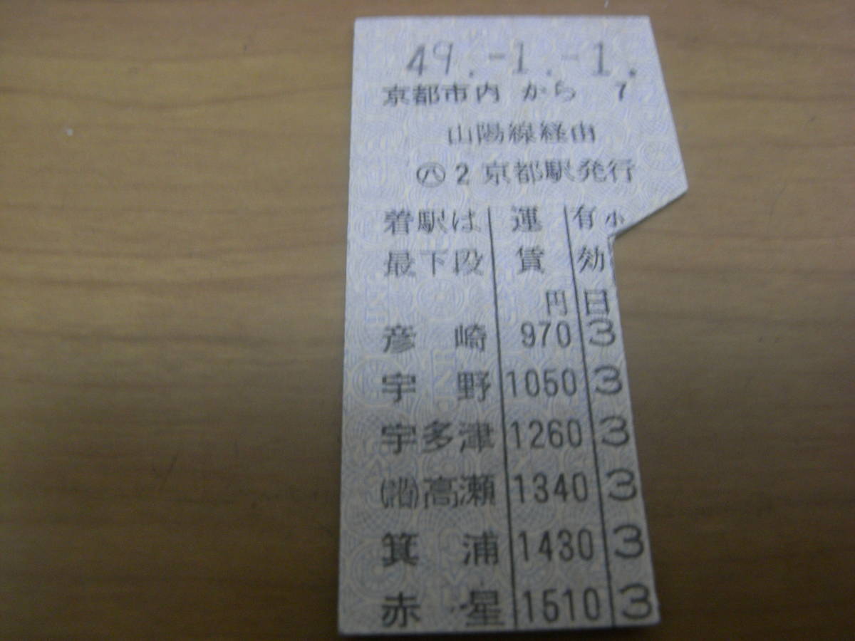 東海道本線 京都市内から赤星 山陽線経由 昭和49年1月1日 京都駅発行 準常備 国鉄